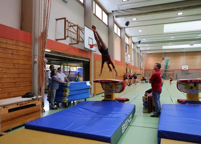 Die Leistungsturngruppe trainiert mit Mädchen in den einzelnen Altersklassen zweimal pro Woche (dienstags und donnerstags) die Sportart Gerätturnen mit den vier Geräten Schwebebalken, Boden, Sprung und Reck/Stufenbarren. Ziele sind das Erlernen der altersgemäßen Pflicht-Übungen und der Besuch von Wettkämpfen, hauptsächlich auf Turngau-Ebene. Wir brauchen Verstärkung im Trainerteam.
