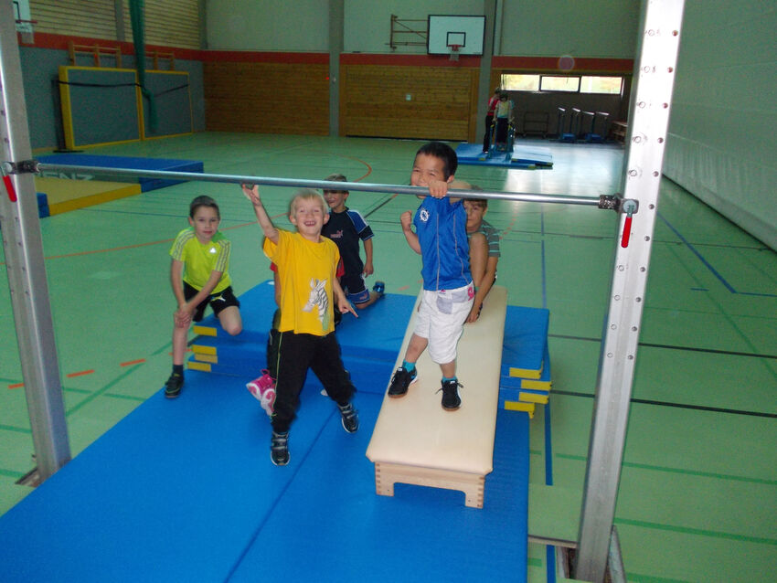 In dieser Gruppe geht es vor allem darum, dass sich die Jungs so richtig austoben können und Spaß an der Bewegung haben. Das eigene Körpergefühl der Kinder soll durch das Turnen an und mit verschiedenen Geräten gefördert und verbessert werden. Natürlich kommt auch das Rangeln und Raufen bei den vielen Spielen während der Stunde nicht zu kurz, so dass die Jungs am Abend müde und zufrieden ins Bett fallen.