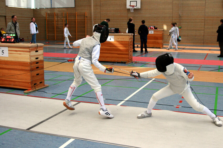 Im ältesten Jahrgang, der Kategorie Schüler (Ä) ging Paul von Dewitz an den Start. Beeindruckt von der Atmosphäre und dem Auftreten der routinierten Gegner war ihm die Nervosität im ersten Gefecht anzumerken. Ab dem Zweiten fand er dann wieder zu seinem dynamischen Fechtstil zurück und konnte fortan mitfechten. Für einen Aufstieg in die KO-Finals reichte es aber noch nicht.