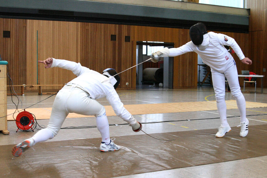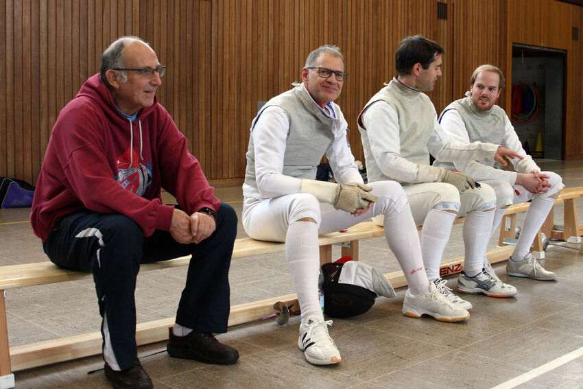 Die A-Jugend focht in einer gemeinsamen Runde mit den Junioren und Aktiven. Besonders erfreulich ist sicher, dass der neue Stadtmeister der A-Jugend Joshua Müller sowie der Juniorenmeister Benjamin Tonhauser wieder zur Fechtabteilung zurückgefunden haben. Gerade in diesen Altersklassen hat die Zeit in Obereisenbach eine größere Lücke in der Fechtabteilung hinterlassen. In der Runde der fünf Aktiven wurde für das Auge schöner Fechtsport geboten. Björn Biehler konnte am Ende den obersten Platz auf dem Treppchen vor Andreas Alsdorf und Ludwig Stolberg erobern.