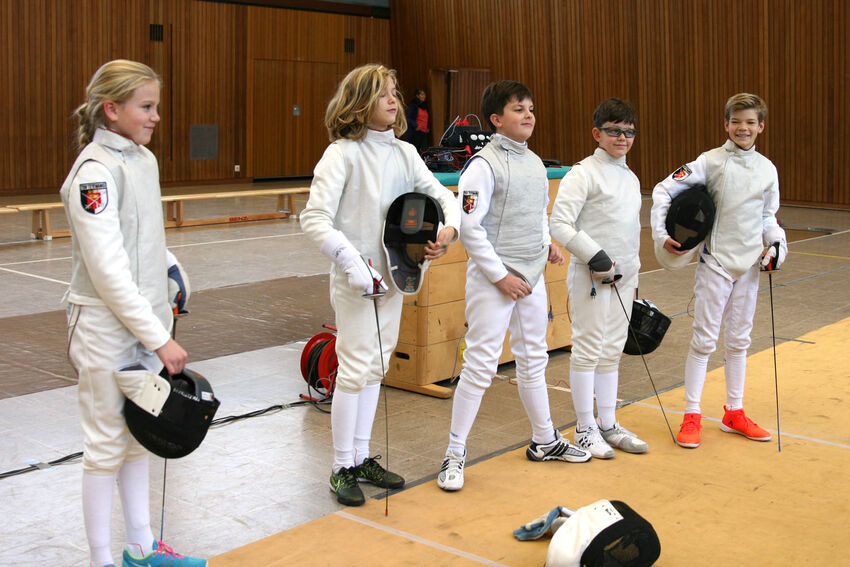 Bei den jüngsten Musketieren des aktuellen Anfängerkurses war die Begeisterung nicht zu übersehen, durften doch zum ersten Mal alle ans Turniergerät. Neben der Fechtrunde, in der jeder gegen jeden antrat, zählten in dieser Gruppe auch Geschicklichkeits- und Reaktionsspiele. Diesen Mix beherrschten bei den Mädchen die Stadtmeisterin Julia Neumeister, Katelynn Greck als Vizemeisterin und Jule Merkl auf Platz drei am besten. Bei den Jungen gab es ein Kopf an Kopf-Rennen, indem sich Winston Cheng den Titel knapp vor den beiden gleichauf liegenden Vizemeistern Noah Eser und Niklas Krause holte.