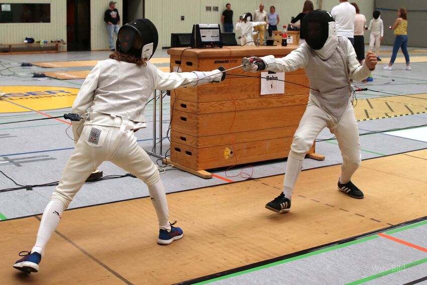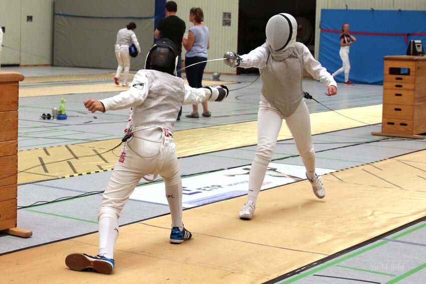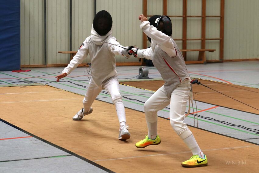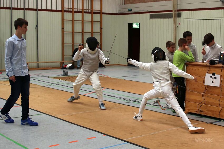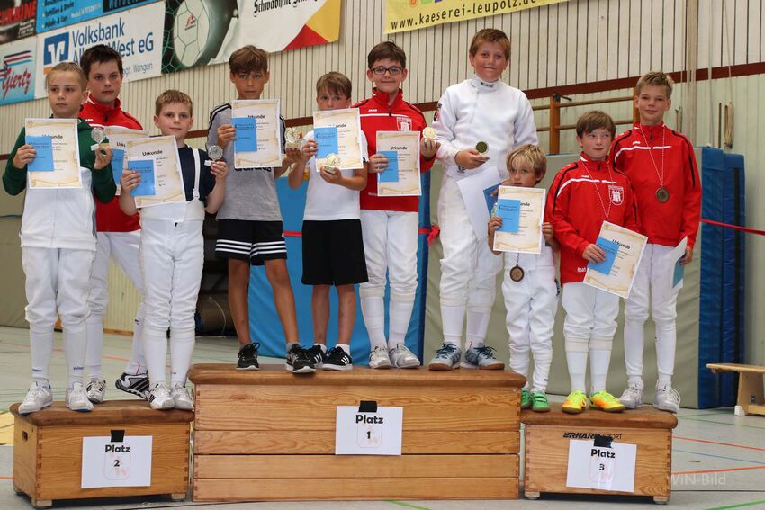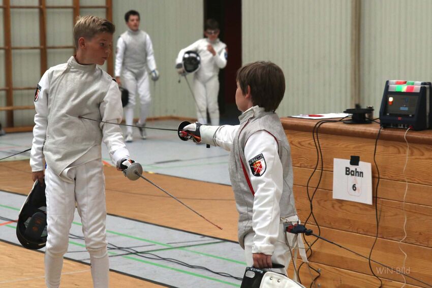 Bei den Jungen war schon das Ergebnis der Vorrunde das erste Highlight des Tages; von den zehn Teilnehmern belegten die TSV-Florettfechter die Plätze eins bis fünf. In den U12-Halbfinalen trafen Finn Wattenbach und Tobias Reutter sowie Noah Eser und Noel Rilling aufeinander. Nach spannenden und hart umkämpften Matches zogen Tobias Reutter und Noel Rilling ins Finale ein. Beim Stand von 3:3 wurde das Gefecht auf eine Minute begrenzt und Tobias Reutter der Vorteil zugelost. Nun musste Noel Rilling angreifen um nicht bei Zeitablauf zu verlieren. Tobias Reutter verteidigte sich geschickt und konnte sich so den Titel erkämpfen. Im U11-Finale konnte sich Alexander Neumeister früh absetzten und mit einen sicheren Sieg die Goldmedaille gewinnen.