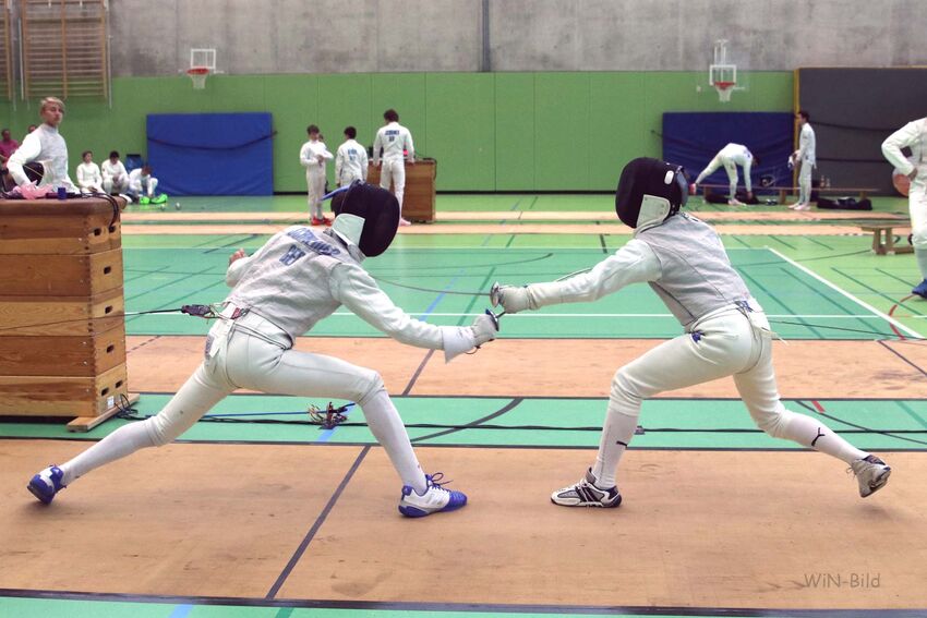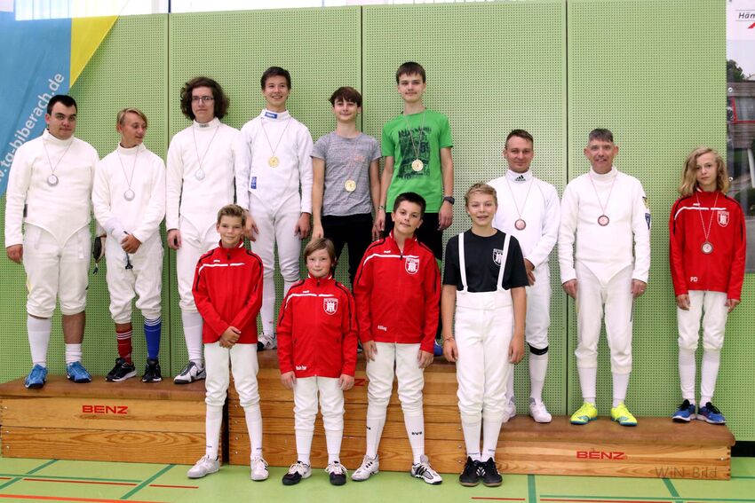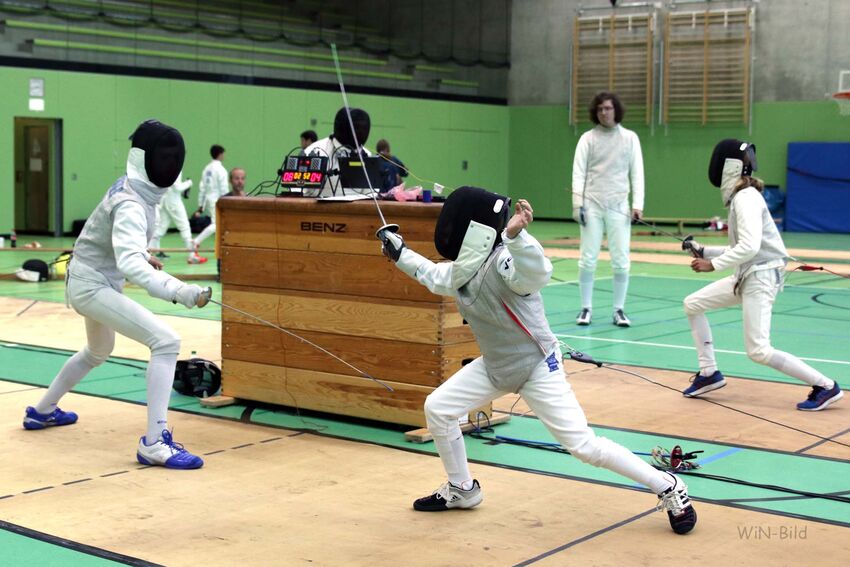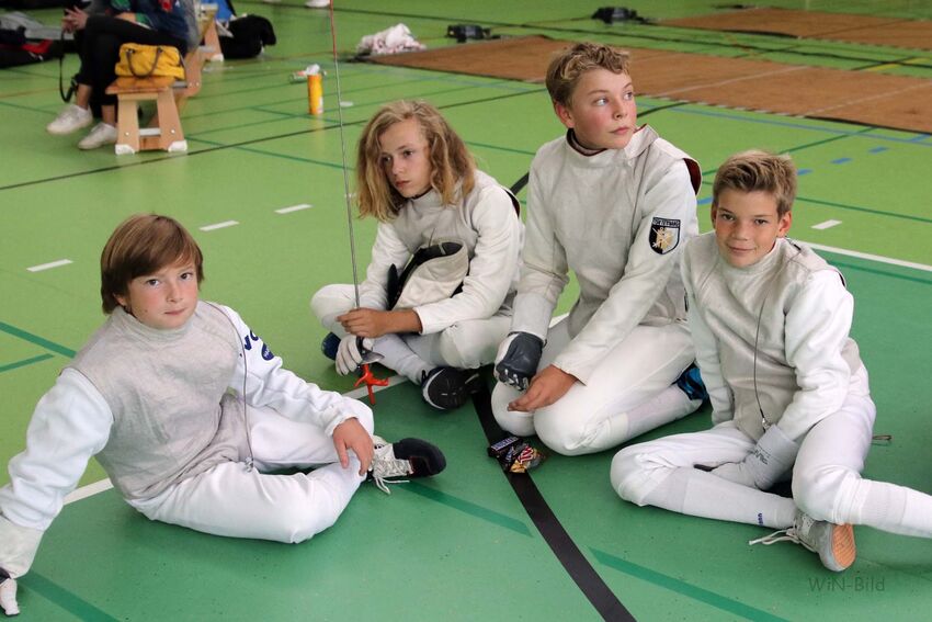 Auch bei den Herren war die TG Biberach das Maß der Dinge und so ging es für Ruben Hille, Paul von Dewitz und Daniel Renner, Fechtakademie Ravensburg gegen Wangen um den Vizemeistertitel. Wangen behielt die Oberhand und Tettnang 1 wurde Dritter. Ganz knapp verfehlten die Tettnanger U14-Youngster Noel Rilling, Finn Wattenbach, Ruwen Schmidt und Noah Eser die Sensation. Vor dem letzten Gefecht führten sie gegen Wangen und lagen nur knapp gegen Tettnang 1 zurück, mussten sich aber am Ende geschlagen geben und wurden vielbeachteter Vierter.