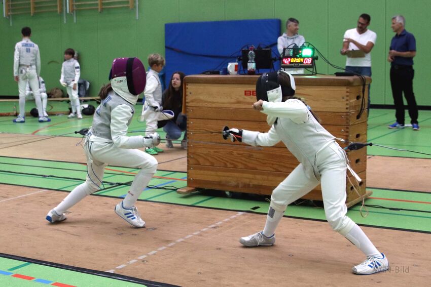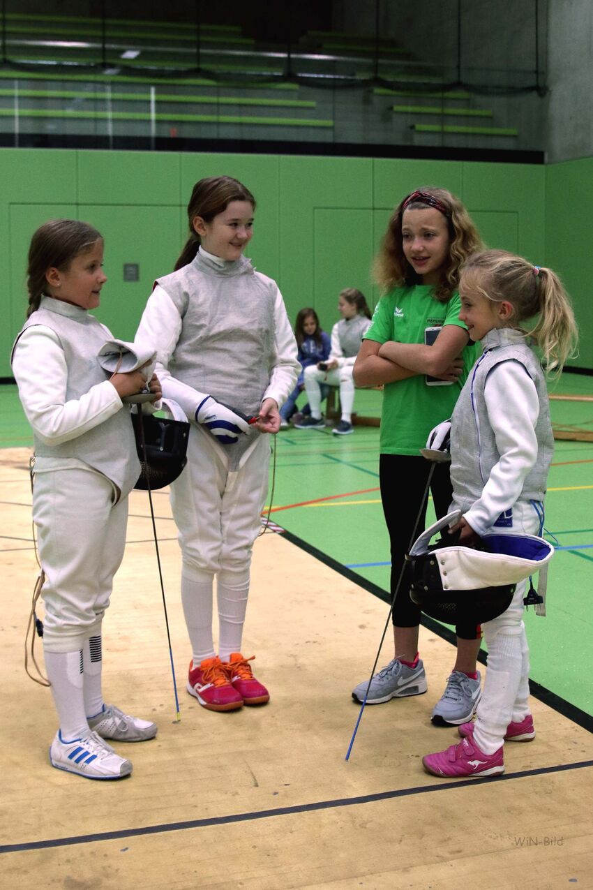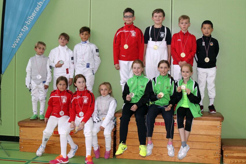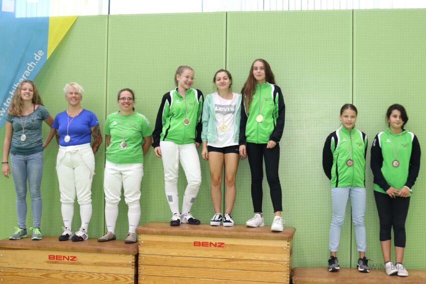 Bei den Mädchen fochten Lea Lehmann und Julia Neumeister in einer SG mit Sophie Brandt von der TG Biberach. Die sehr junge Mannschaft schlug sich wacker und konnte immer wieder Punkten. Die erste Equipe aus Biberach war jedoch zu stark und wurde Meister vor den Tettnanger Vizemeisterinnen.