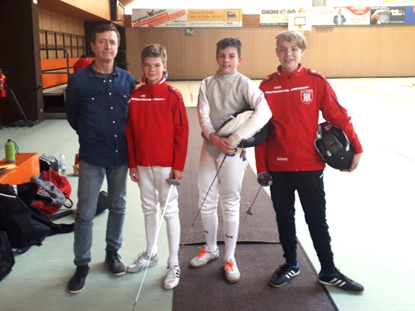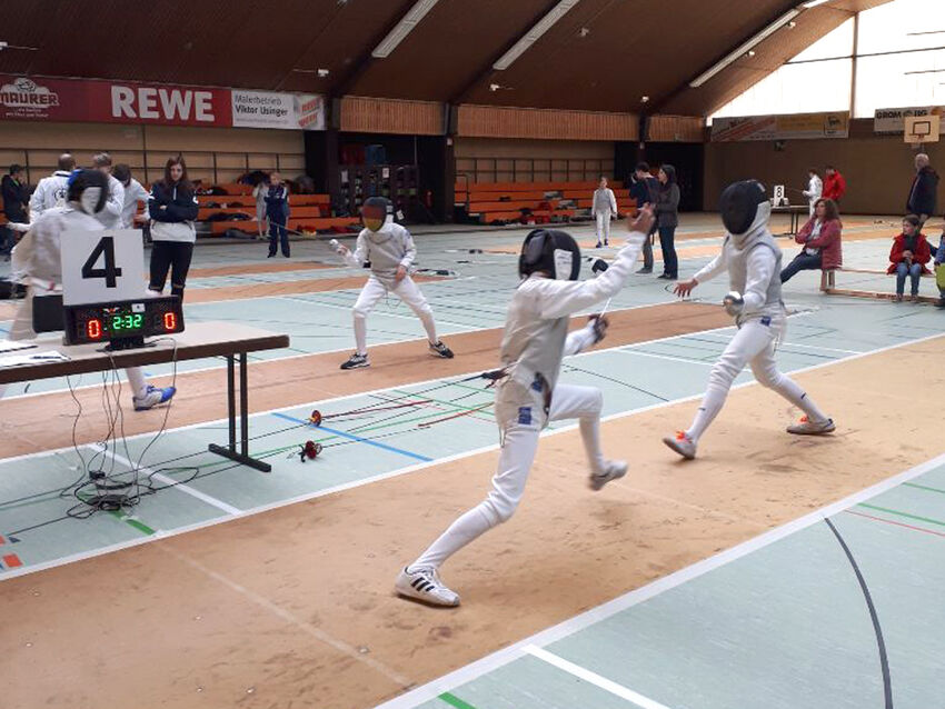 Zur Landesmeisterschaft der U14- und U13-Florettfechter war TSV-Trainer Adrian Germanus mit seinen Schützlingen Noel Rilling, Finn Wattenbach und Ruwen Schmidt vergangenen Samstag nach Korb angereist. Für Ruwen Schmidt war das Ziel bei seinem ersten Qualifikationsturnier sich mit der Atmosphäre vertraut zu machen und Erfahrung zu sammeln. Dass er im Achtelfinale gleich die ersten U14-Ranglistenpunkte einsammeln konnte, war besonders erfreulich.