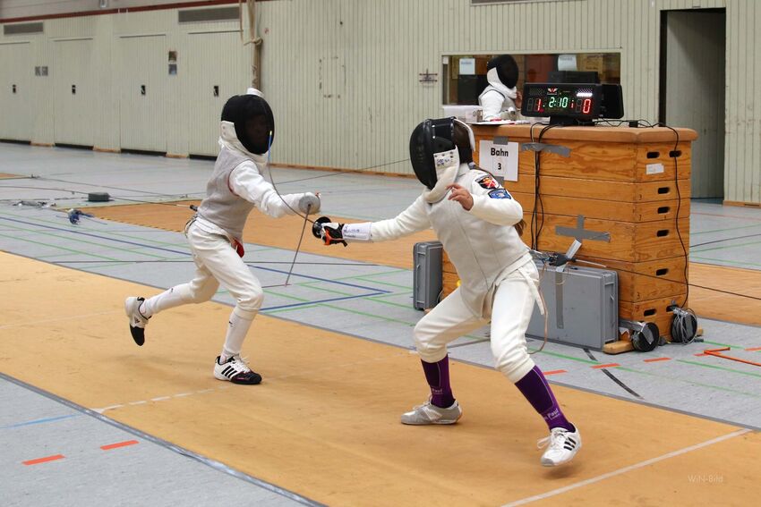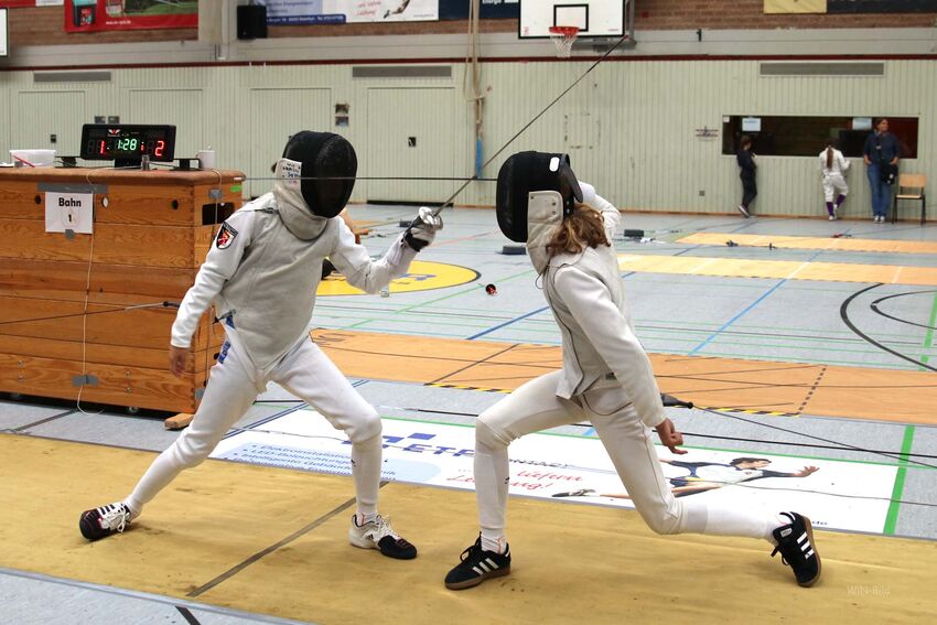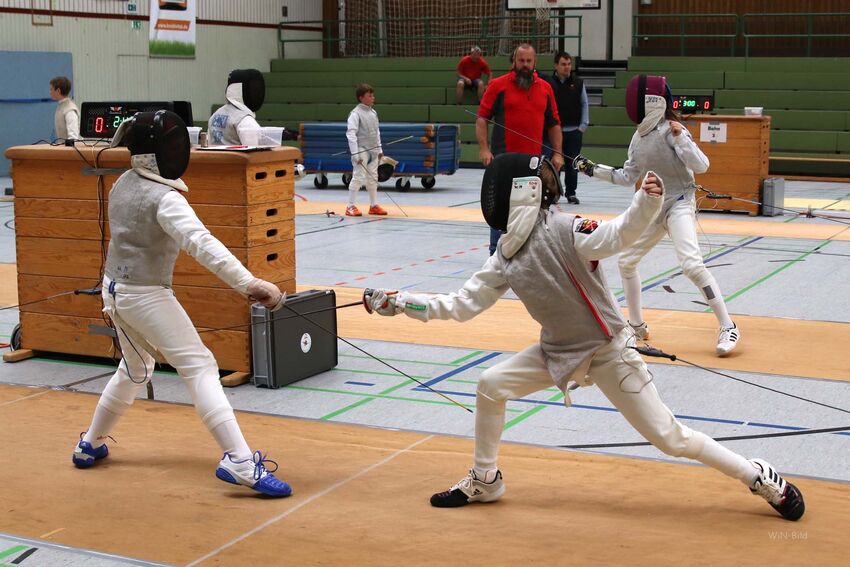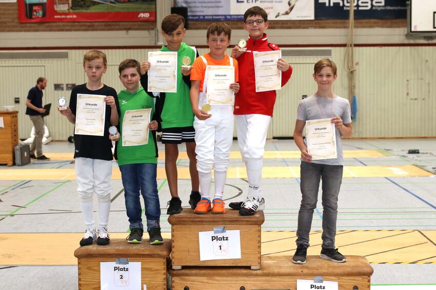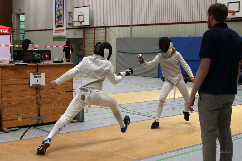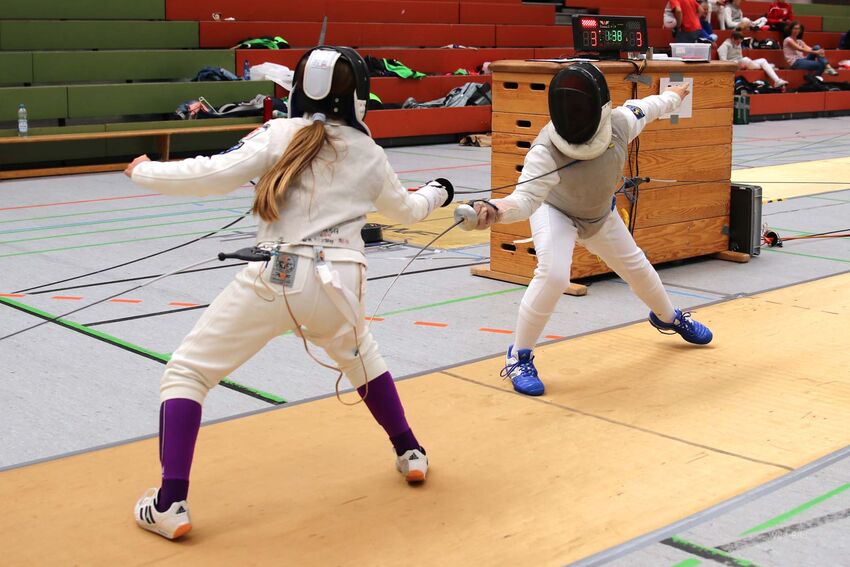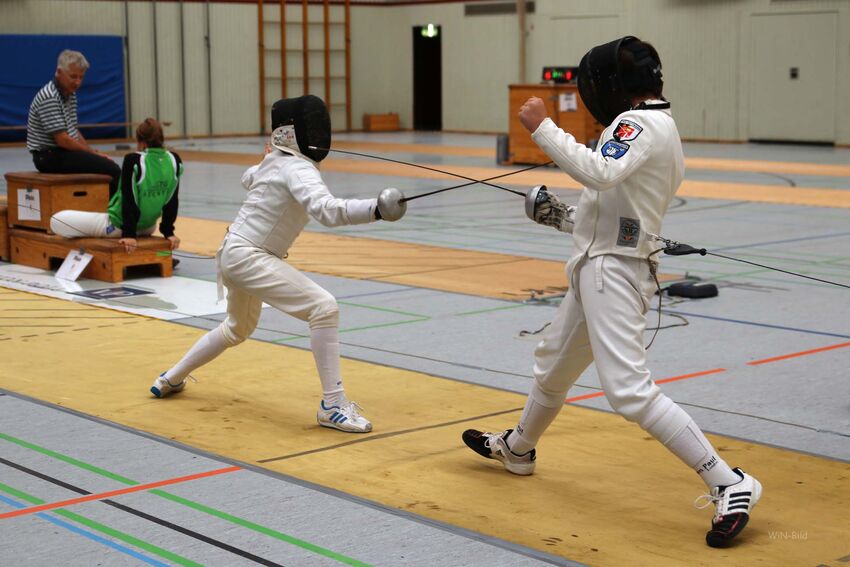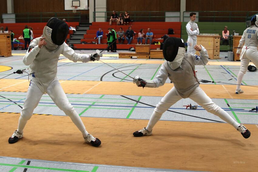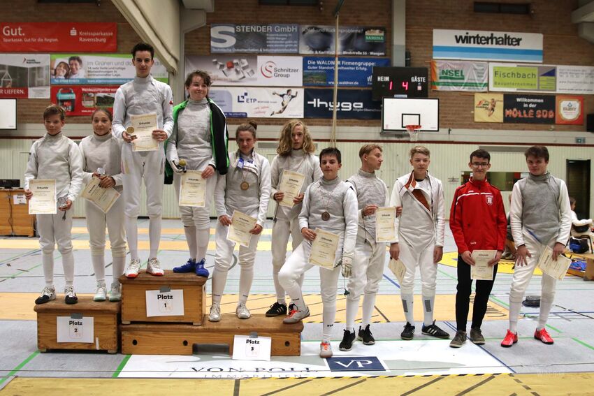 Als Vertreter der Jugend gingen Alexander und Julia Neumeister auf Trefferjagd. Obwohl auch Julia auf das Florett spezialisiert ist, gelang es ihr auch mit dem Degen den Vorjahrestitel zu verteidigen. Auf Alexander Neumeister wartete mit Marlon Liebscher vom TSV Laupheim ein Degenspeziallist im Finale. Nach einem ersten Abtasten konnte sich der auch im Degen erfahrene Tettnanger absetzten und erneut die U12-Degenmeisterschaft gewinnen.