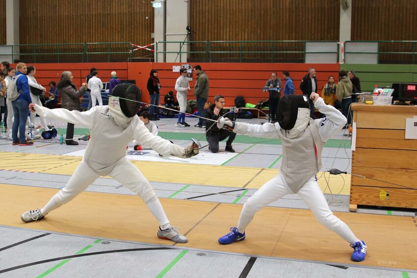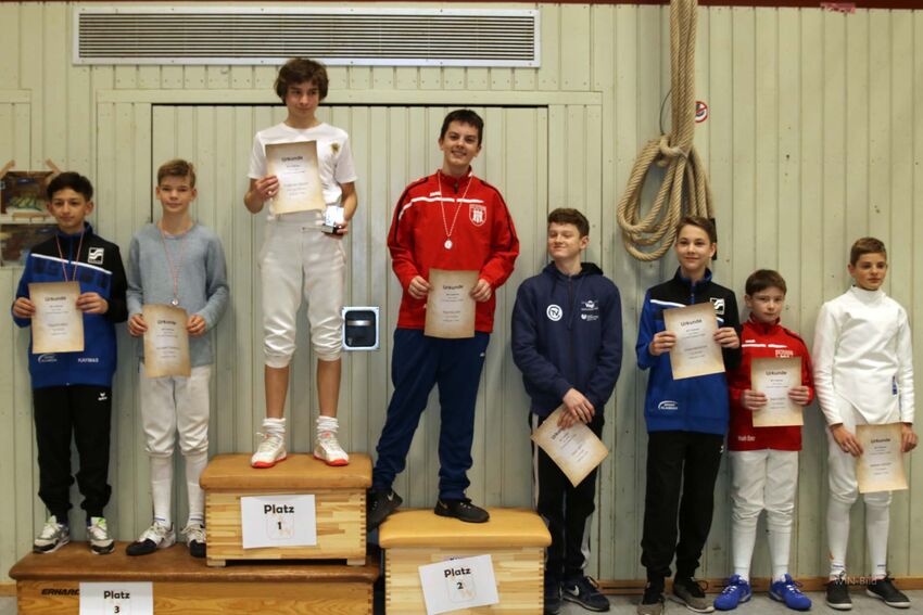 Bei den U15-Jungen gingen Noel Rilling, Finn Wattenbach und Noah Eser auf die Jagd nach IBF-Punkten. Die Tettnanger schlugen sich im Zwölferfeld gut und standen nach der Vorrunde auf aussichtreichen, Noel Rilling gar auf dem ersten Setzplatz für die K.o.-Finale. Leider trafen die Tettnanger im K.o.-Pfad aufeinander, so dass Noel Rilling im Viertelfinale Noah Eser stoppte. Noch bitterer war das Halbfinale, in dem sich Finn Wattenbach und Rilling einen Krimi lieferten. Beim Stand von 10:10 war die Uhr abgelaufen und es ging nach Losentscheid mit dem Vorteil für Noel Rilling in die Verlängerung. Die letzte Attacke von Wattenbach traf, aber um einen Wimpernschlag war die Zeit abgelaufen und der Meldecomputer geblockt. Im Finale bot Rilling seinem Münchner Gegenüber sehenswertes Florettfechten, das mit der Silbermedaille belohnt wurde.