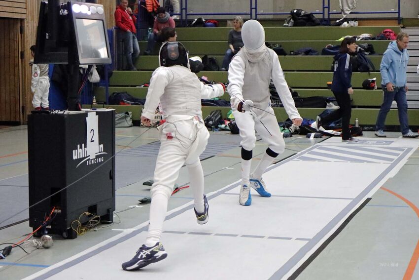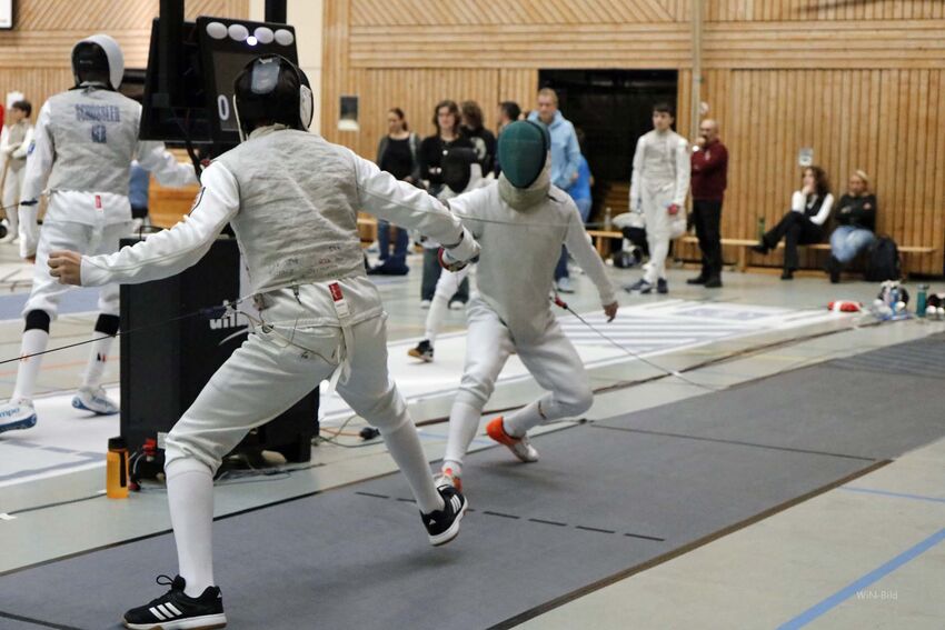 Währenddessen schlugen sich die Rookies Raphael Lutz, Johannes Endres und Aaron Hernández in den teils knallharten U15-Vorrunden wacker. Beachtliche zwei Siege konnte Lutz und Endres einen in diesem Q-Turnier erkämpfen, obwohl sie erst vor einem Jahr das Fechten begonnen haben. Der Dritte im Bunde wehrte sich nach Kräften und zeigte gute Aktionen, in einer Runde mit dem Deutschen Meister und gleich drei weiteren Hochkarätern blieb es für Hernández vergebliche Mühe ohne Sieg. Dementsprechend gesetzt kam das Aus in der Direktausscheidung für Hernández und Endres schnell, einzig Raphael Lutz führte zeitweise und verfehlte den Sieg mit 11:15 knapp. Die Aufwärtstendenz dieser drei Späteinsteiger in einem süddeutschen Spitzenfeld sorgt für Vorfreude auf die noch kommenden Turniere dieser Saison.