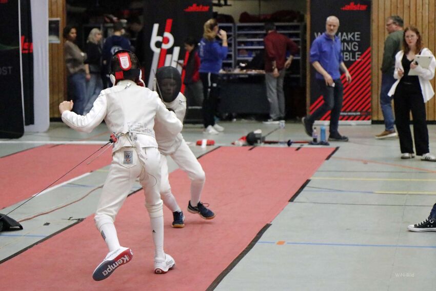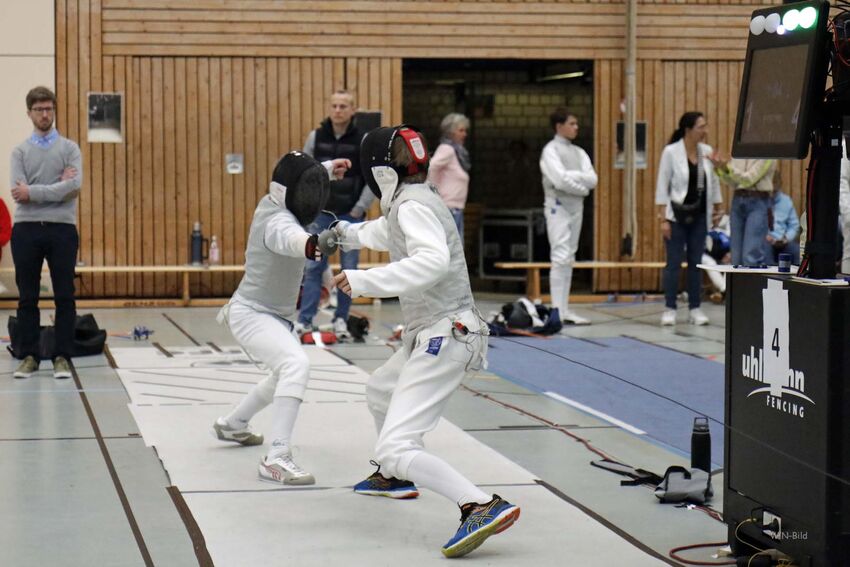 Beim Stuttgarter Rössle-Turnier startete Zoe Stratkemper ganz hervorragend aufgelegt in die Vorrunde. Vier deutlichen Siegen stand nur eine 4:5-Niederlage gegenüber, was im 20er-Feld den guten fünften Setzplatz für die Direktausscheidung inklusive eines Freiloses für die erste Stufe bedeutete. Zum Achtelfinale stieg das junge Tettnanger U11-Talent wieder ein und ließ auf jeden Treffer ihrer Tauberbischofsheimer Gegnerin zwei eigene folgen, womit das Gefecht zügig entschieden war. Im Viertelfinale hielt die Schwäbisch Gmünderin zum Einstieg neue taktische Aktionen bereit, die erst geknackt werden wollten. Stück für Stück löste Stratkemper die Aufgabe und drehte nach zwischenzeitlichem 1:4-Rückstand beim 5:5 das Match. Im Halbfinale wartete die der Tettnangerin bekannte Lokalmatadorin Müller vom PSV Stuttgart. Trotz der beherzten Angriffe gelang es der Stuttgarterin, die Mehrzahl abzufangen und mit der Riposte zu punkten. So blieb am Ende ein 6:10 und die Bronzemedaille sowie der zweite Platz auf der Landesrangliste hinter der Stuttgarterin.