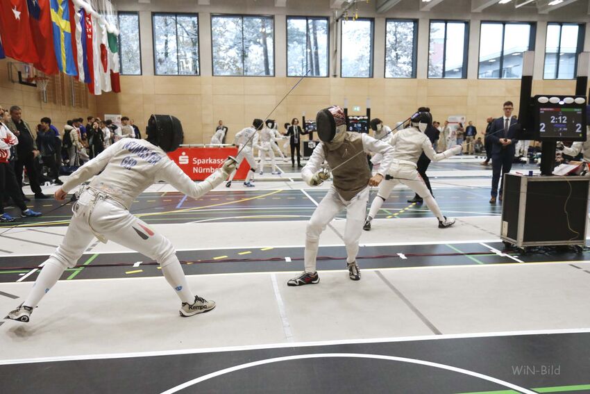 Mit großem Einsatz hat sich Alexander Neumeister für den Start beim CC in Nürnberg ins Deutsche Kontingent gefochten. Sein erster Auftritt im europäischen Wettbewerb verlief mit einem Sieg gegen einen griechischen Fechter und zwei denkbar knappen 4:5 gegen den schwedischen und türkischen Vertreter deutlich besser als erwartet. Offensichtlich war aber auch die Leistungslücke, die zwischen dem fünfzehnjährigen Tettnanger und der U17-Spitze besteht, wie das 1:5 gegen den amerikanischen und das 2:5 gegen den ungarischen Rundenteilnehmer zeigten.