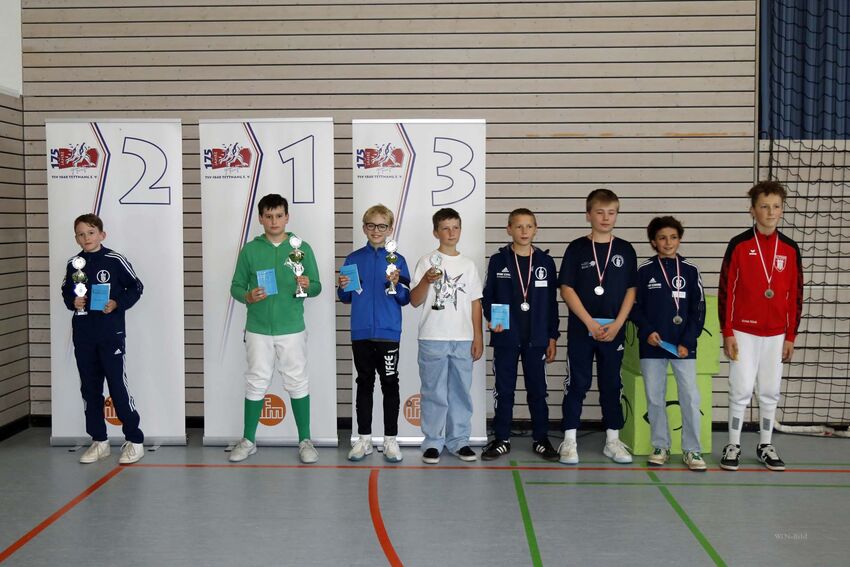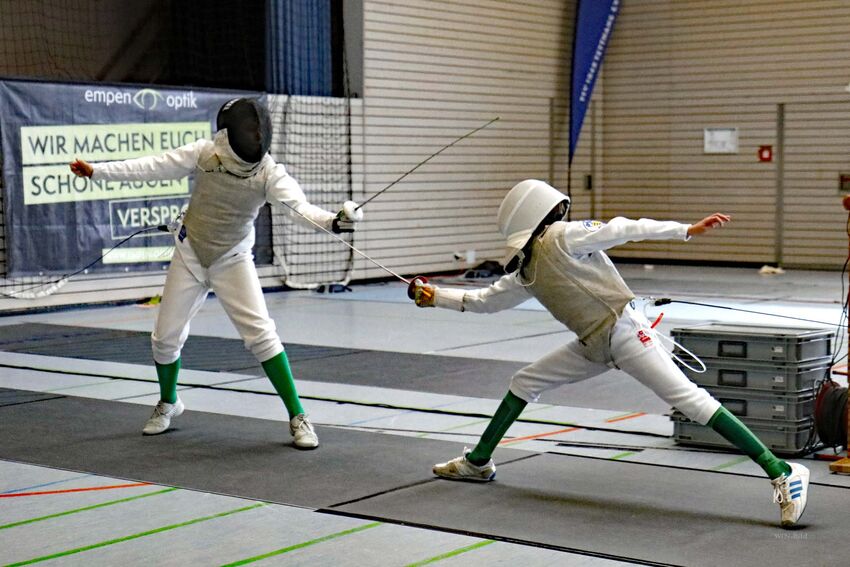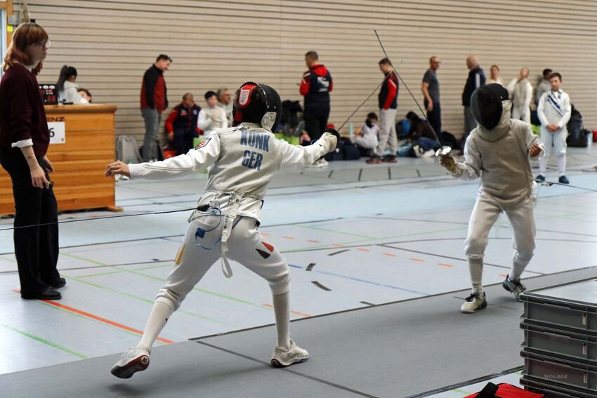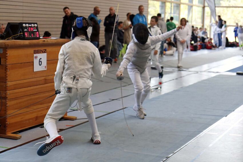 Bei den U15 Herren übernahm der Vorjahres-DM-Dritte Oliver Zhong von der TSG Weinheim nach der Vorrunde die Führung und gab auch in der Direktausscheidung kein Gefecht ab. Das Finale gegen den Stuttgarter Faitsch entschied er mit einem sehenswerten Schlusstreffer für sich. In der U13 kamen mit Kiel, Carlé (beide PSV Stuttgart) und Menzel (FC Fürth) drei Fechter ungeschlagen in die Direktausscheidung. Kiel traf im Viertelfinale auf den sehr gut aufgelegten Tettnanger Niclas Künk, der dem zweifachen Landesmeister aus Stuttgart nicht ganz gewachsen war. Platz acht, viele Ranglistenpunkte und aktuell ein DM-Startplatz sind für den jungen Tettnanger ein achtbares Ergebnis. Das U13-Finale auf Messers Schneide entschied der zweifache Bayerische Landesmeister David Menzel mit 10:9 gegen den Nord-Baden – Württembergischen Kiel für sich. Beachtlich sind auch die Leistungen der beiden Tettnanger Jonathan Rebholz und Erik Zlate-Podani, die sich bis ins 16.-K.o.-Finale gefochten haben und die Plätze 14 und 16 holen konnten.