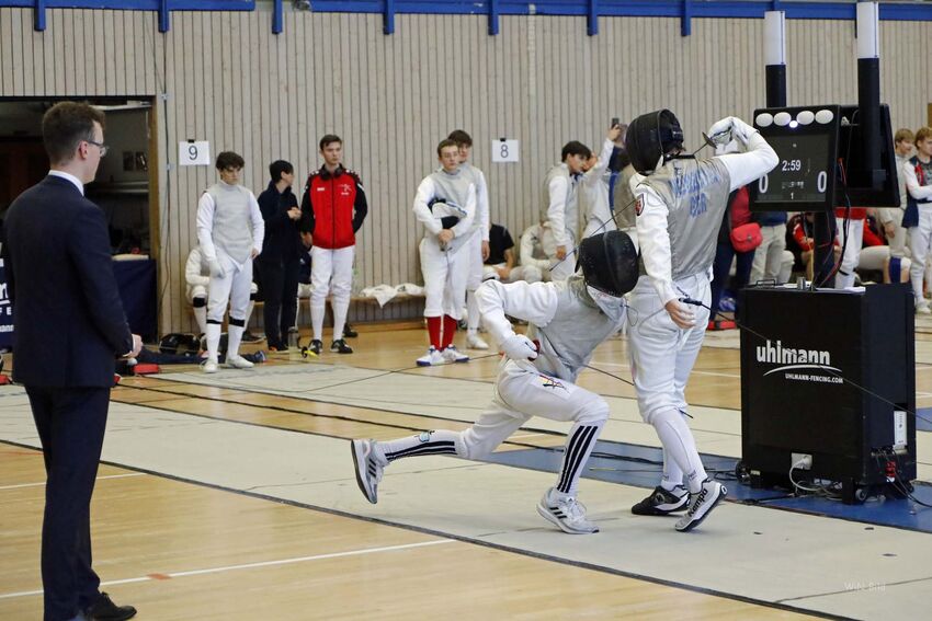 Noel Rilling steigt beim U20-Q-Turnier mit vier Siegen souverän in die K.o.-Finale auf. Nach einem überlegt herausgefochtenen Sieg im ersten K.o.-Gefecht traf der ausgesprochen gut aufgelegte Tettnanger im zweiten Direktausscheid leider zu früh auf den späteren Sieger und DFB-Ranglistenersten Hendrik Barby. Damit steigt Rilling auf Platz 48 der DFB-Rangliste und Alexander Neumeister belegt Platz 66.