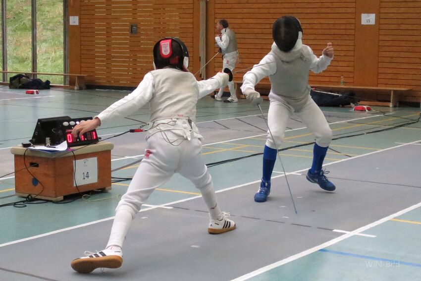 Routinier Alexander Neumeister verbuchte drei Siege in der U17-Vorrunde. Im Achtelfinale traf er auf den Landesmeister. Nach komfortabler Halbzeitführung befolgte er die Anweisung der Kampfrichterin an beide Fechter, Nahkämpfe auf gleicher Höhe wegen möglichen Verdeckens der Trefffläche zu unterlassen. Bedauerlicherweise wurden diese vom Gegner fortgeführten Aktionen im weiteren Verlauf nicht wie angekündigt sanktioniert, sodass Neumeister das Match knapp abgab. Nach kurzer Verärgerung stellte sich die Freude über die mit dem zwölften Platz erkämpften dreizehn Punkten ein - Alexander Neumeister holt für den TSV 1848 Tettnang e.V. das erste Ticket dieser Saison zur Deutschen Meisterschaft in Moers!