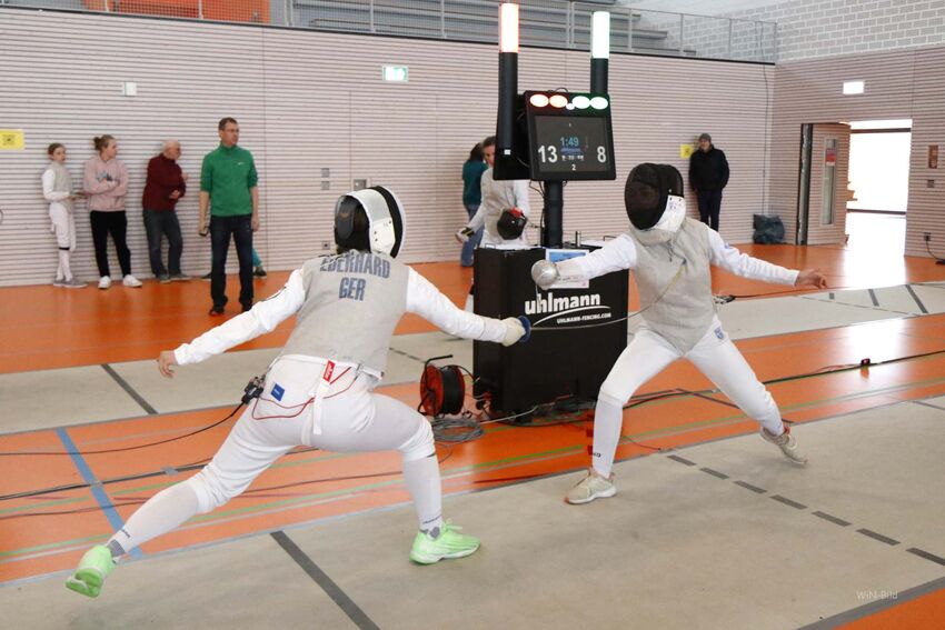 Luisa Weishaupt gab ein außergewöhnliches Debut auf der Landesebene und hatte nach der Vorrunde drei Siege und zwei Niederlagen zu Buche stehen. Auch sie gewann das erste K.o.-Finale, ehe sie dann von der Konkurrenz aus den Fechtzentren gestoppt wurde. Sie steigt mit vier Punkten direkt auf Platz elf der WFB-Rangliste eine.