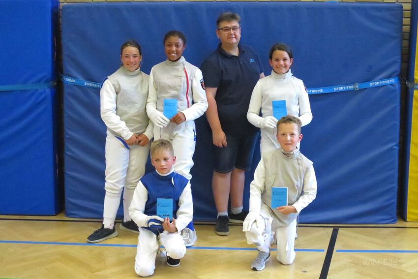 Adaeze Udeh, Elenor Pechar, Luisa Weishaupt, Leo Miladic und Niclas Künk haben die Turnierreifeprüfung (TRP) bestanden. Obwohl die jungen Fechtenden schon teilweise Turniere gewonnen haben oder gar frisch gebackene Bezirksmeister sind, waren sie bisher von Landesmeisterschaften und Q-Turnieren ausgeschlossen. Für diese Klassen sind zuerst das praktische Können und das Fechtwissen in der TRP zu demonstrieren.