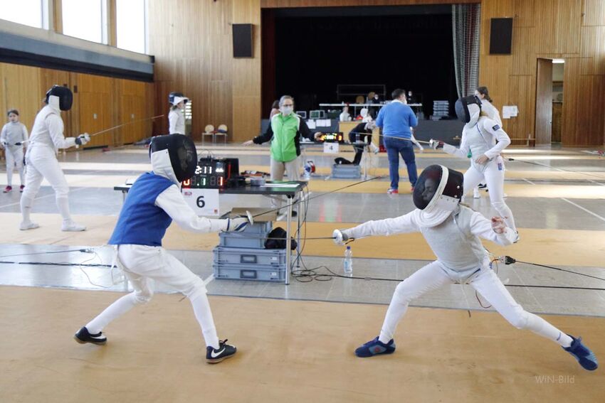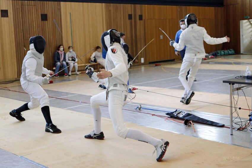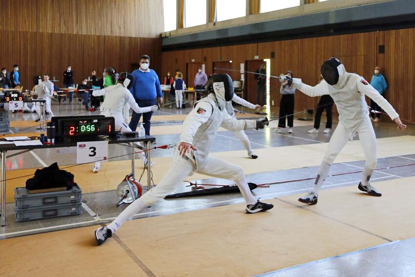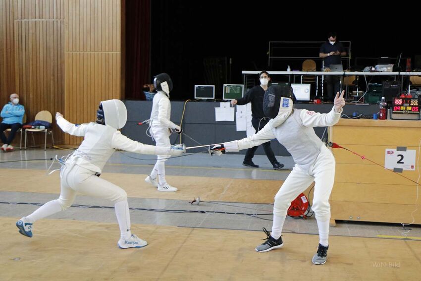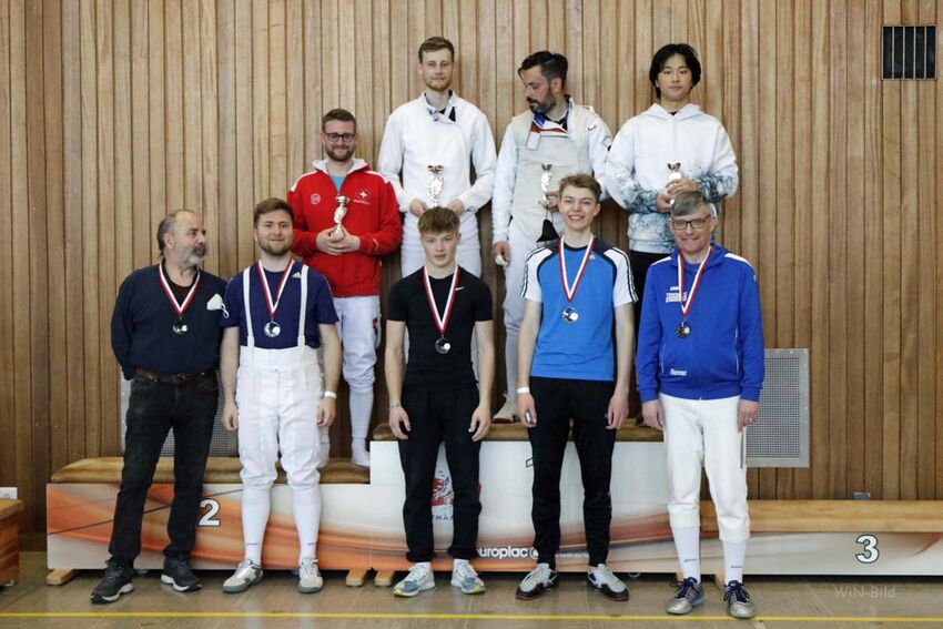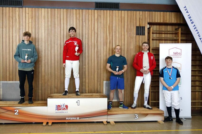 Die routinierten U17-Herren des Gastgebers lieferten sehenswerten Fechtsport. Ins Halbfinale können nur vier Fechter und so war für Lars Strasser auf Platz fünf das Turnier beendet. Die anderen vier Tettnanger Leander Pechar, Ruwen Schmidt, Finn Wattenbach und Alexander Neumeister hatten mit dem Halbfinale schon die Podestplätze sicher. Wattenbach und Neumeister ließen sich den Finaleinzug nicht nehmen und verwiesen Schmidt und Pechar auf die Bronzeränge. Im Finale zeigten beide Kontrahenten ihr Können und ließen auf schnelle Angriffe Paraden und Gegenangriffe folgen ehe Alexander Neumeister gewinnen konnte.