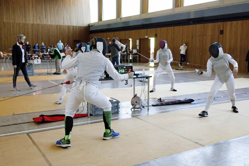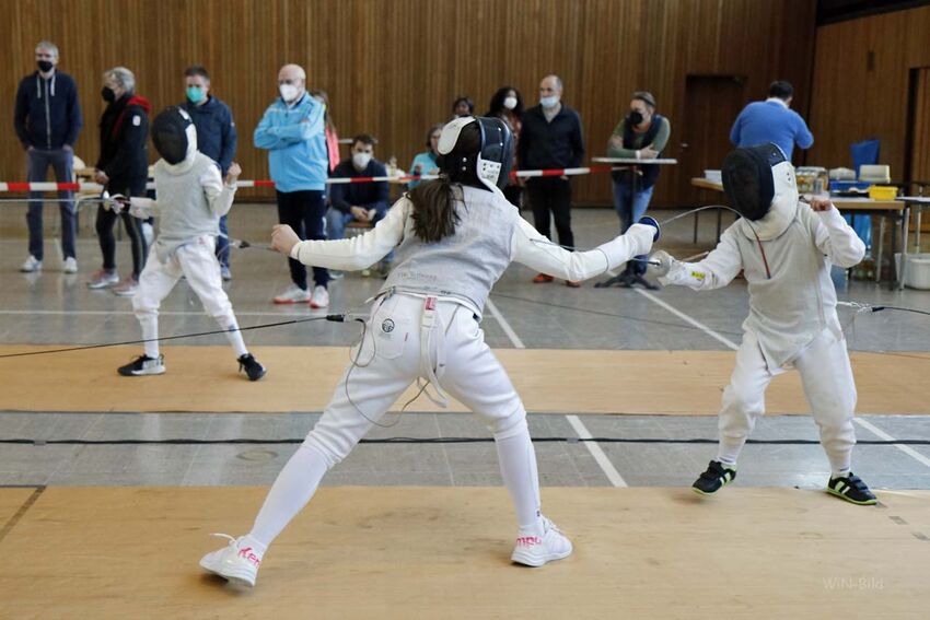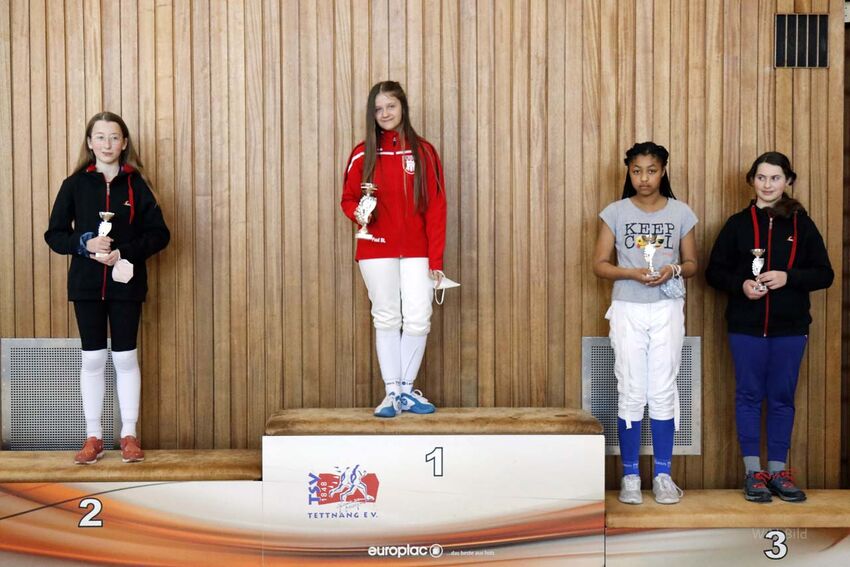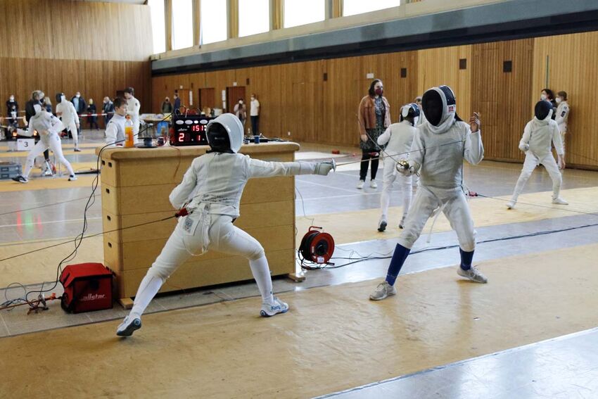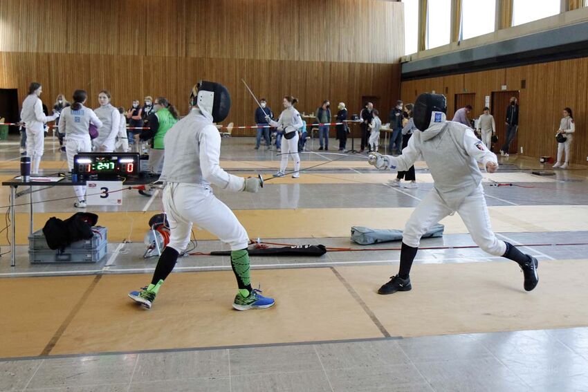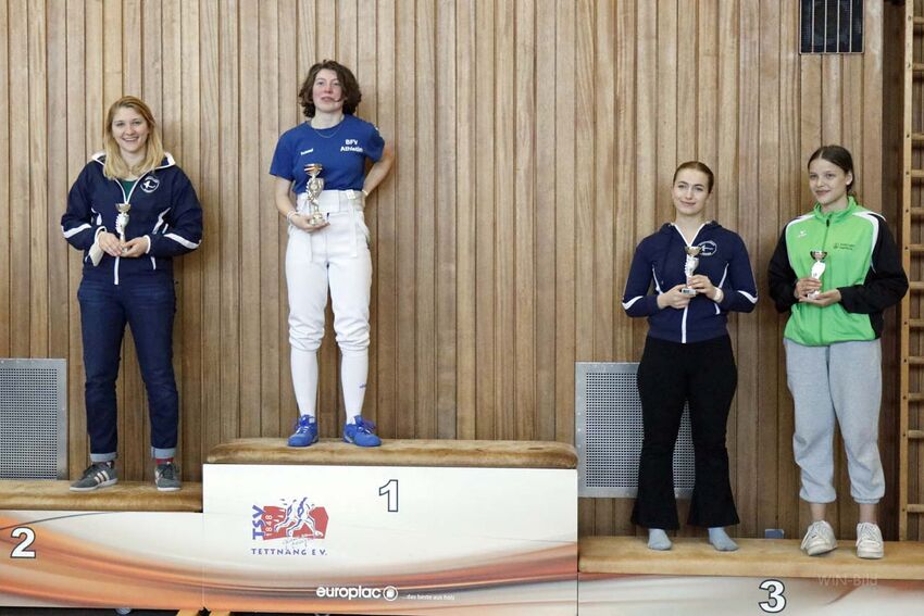 Nachmittags folgten die U15 und die Aktiven. Sabrina Eberhard und Varja Guseva traten mit frisch bestandener Turnierreifeprüfung an und schlugen sich mit Platz fünf und sieben wacker gegen die erfahreneren Fechterinnen. In diesem Feld gelang es Julia Neumeister, eine Bronzemedaille in der nächsthöheren Altersklasse zu erbeuten. Ebenso erfochten sich Max Kiechle und Paul Stohr bei den Jungen Bronze und Alexander Neumeister gewann erneut Gold. Die TSV-Junioren gaben ihr Bestes, um die verhinderten Herren zu vertreten. Mit den Plätzen sieben, acht und elf schlugen sich Tim Kästner, Ruwen Schmidt und Luis Kramer in dieser Konkurrenz achtbar. Den letzten Glanzpunkt des Tages setzte Marlene Best, die die starke Damen-Konkurrenz für sich entschied.