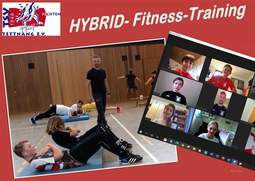 Die Fechtabteilung hat erstmals zu einem Fitness- und Schnellkraft-Training in der Halle Jugendliche live per ZOOM dazugeschaltet. Beim HYBRID-Training nehmen die Sportler in der Halle nach dem BW-Stufen-Check (aktuell Alarmstufe I = 2G) ganz normal am Fitness-Training teil. Mitglieder, die aktuell Kontakte reduzieren wollen oder müssen, kommen per Live-Schaltung von zu Hause zum Training "dazu". Insgesamt nimmt so die Kontaktanzahl ab und die Zahl der Trainierenden zu.