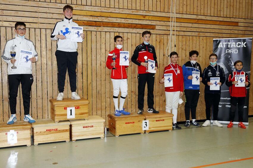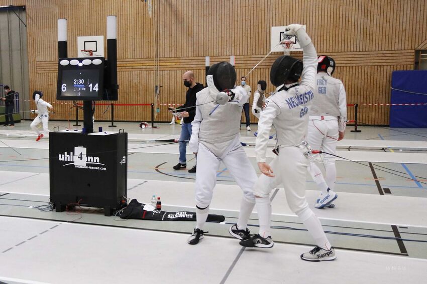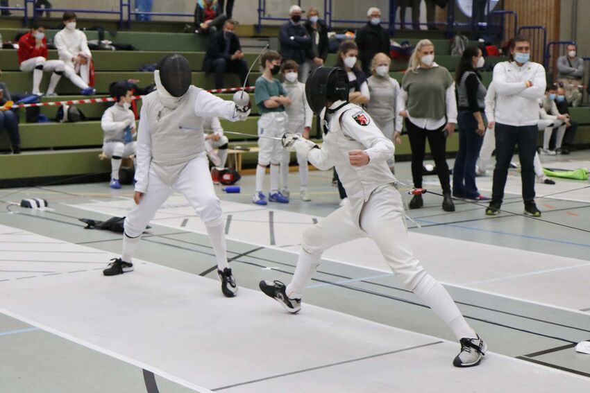 Eine Tag später traten die U15-Herren in Stuttgart an und Alexander Neumeister bewies sich im großen Teilnehmerfeld aus ganz Süddeutschland. Aus einer gesalzenen Vorrunde mit dem vorjährigen Bayerischen Meister und mehreren Kaderfechtern kam er siegreich mit nur einer Niederlage heraus. Mit dem fünften Setzplatz für die KOs belohnt, marschierte er ohne Schwierigkeiten über das 32er- und 16er-KO ins Viertelfinale. Dort traf er auf den späteren Turniersieger aus Weinheim und es entwickelte sich ein sehenswertes Match mit mehrfach wechselnder Führung. Am Ende musste sich der Tettnang trotz sehr guter Leistung mit 12:15 geschlagen geben.