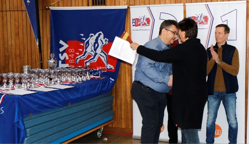 Im Rahmen des Montfort FloreTT Pokals wurde Wilhelm Neumeister von Elke Schömezler mit der silbernen Ehrennadel des TSV 1848 Tettnang e. V. für seinen großen Einsatz im Jubiläumsjahr und Fortschreibung der TSV-Vereinschronik geehrt.