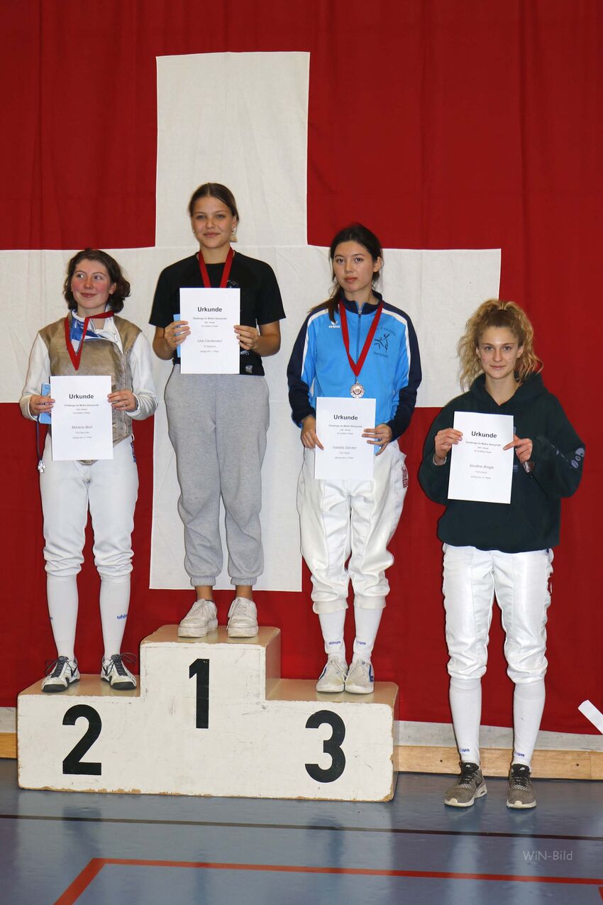 Mit dem erstmals in Flawil ausgetragenen Degen erfocht sich Julia Silber und führt nach den Höchstwertungen in Ravensburg und Wangen souverän auch die Degen-Rangliste an. Mit 14:15 war für Alexander im Halbfinale mit der Bronzemedaille Schluss. Auch er führt nach Siegen in Ravensburg und Wangen mit großem Vorsprung auch in der Degen-Rangliste.