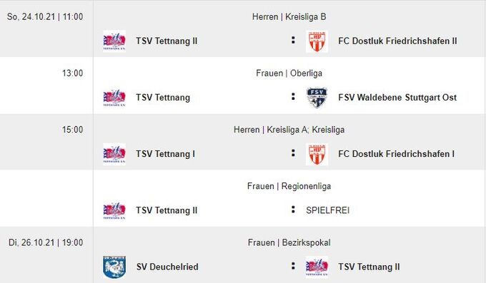 Spielplan vom Wochenende