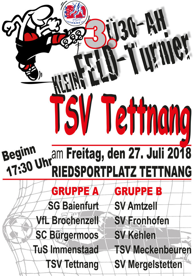 Am Freitag, 27.07.2018 findet ab 17:30 Uhr wieder unser 3. Ü30-AH Kleinfeldturnier im Riedstadion statt