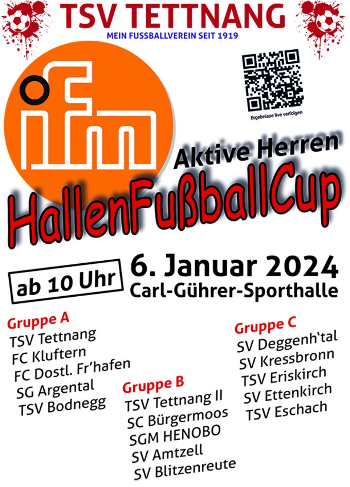 In der siebten Ausgabe des ifm Fußball-Hallenturniers für aktive Herrenteams kämpfen am Samstag, 6. Januar, fünfzehn Herrenmannschaften der Region in der Carl-Gührer-Halle um den begehrten Titel.