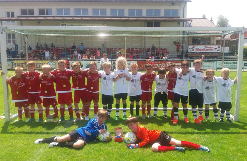 In Meckenbeuren durfte die Jungs dann auch am Schluss jubeln. Bei großer Hitze und in sechs Spielen jeder gegen jeden lagen die Jungs am Schluss auf dem ersten Platz und freuten sich über die Siegermedaillen.