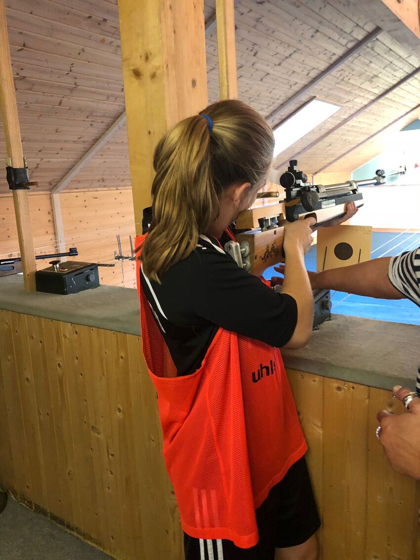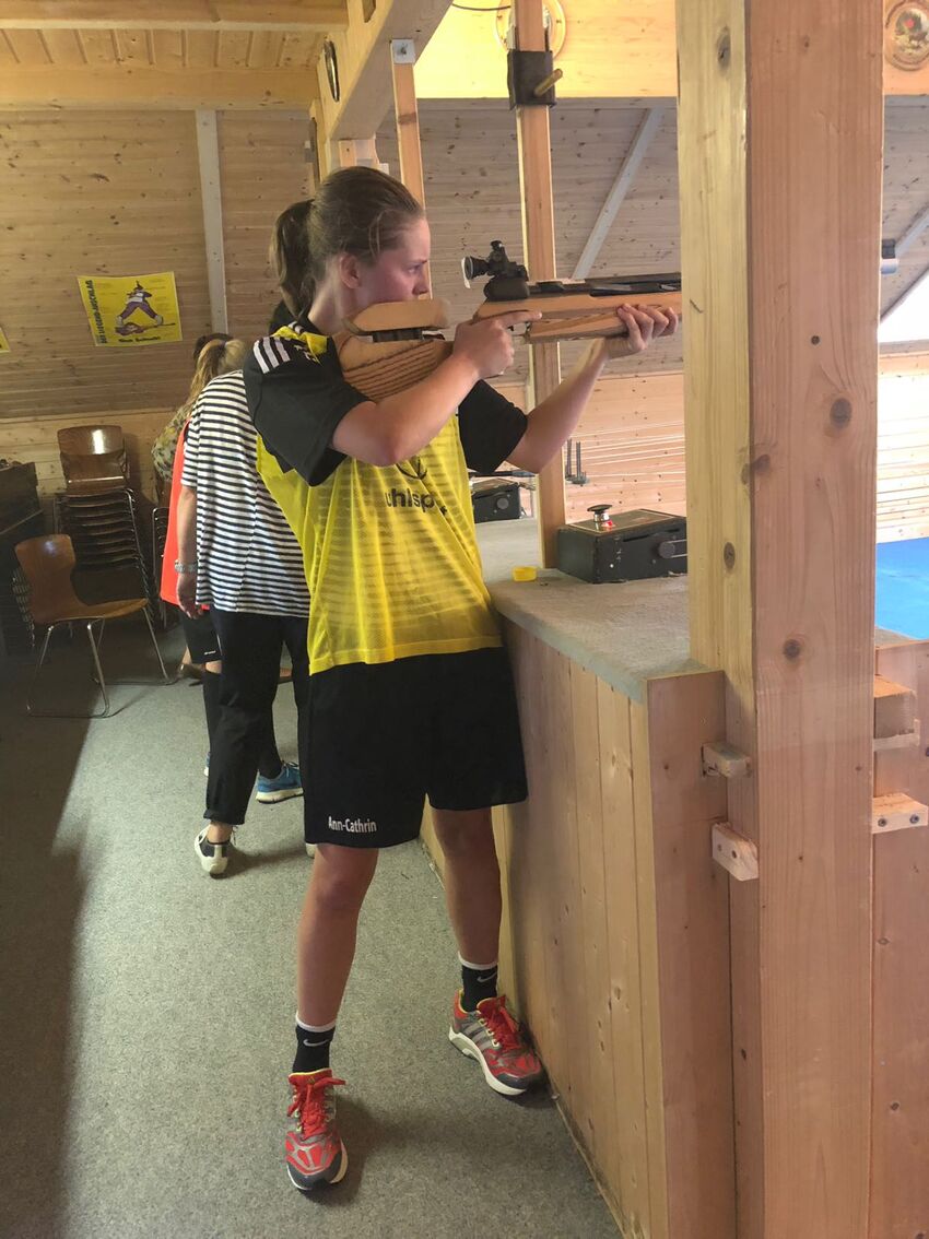 Etwas ganz besonderes ließen sich die beiden Trainer Alex Haag und Andy Konrad für den 23. Juli einfallen: In Partnerschaft mit dem Schützenverein Brochenzell hatten die beiden einen „Biathlon“-Parcours vorbereitet. Dieser war eine Kombination aus Laufeinheit und Luftgewehrschießen, wodurch sowohl Ausdauer als auch Konzentration trainiert wurden.
