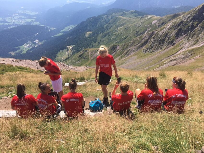 Tags darauf stand eine Bergtour auf den Laugen, dessen höchster Punkt bei 2395m liegt, auf dem Terminplan. Bei strahlendem Sonnenstein und nach anstrengenden 3 Stunden Aufstieg konnten die Tettnanger Fußballdamen erschöpft, aber glücklich vom Gipfel grüßen.