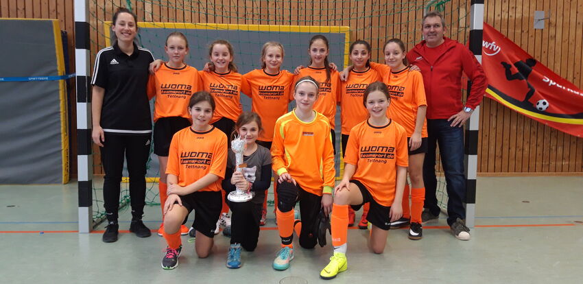 Neben dieser hervorragenden Platzierung, die den Einzug in die wfv-Zwischenrunde in 14 Tagen bedeutet, waren vor allem die Erkenntnisse aus dem Turnier sehr erfreulich: Das Team hat in allen Mannschaftsteilen mehr als überzeugt und nen tollen Job abgeliefert. Vorne im Sturm wurden die Tore gemacht/gezaubert und die Abwehr stand jederzeit super sicher. Egal welche Formation auf dem Feld stand; alle habe sich voll für’s Team reingehauen. Der Anhang auf der Tribüne war zahlreich und feuerte unser Team auch in kritischen Situationen lautstark an. Das Tor des Tages (des Monats) schoss Lea, als sie im Match gegen Bellamont rückwärts zum Tor stand und den Ball per Hacke zum Siegtreffer versenkte. Zur Überraschung und Freude aller wurde nach Turnierende sogar ein selbstgebastelter Pokal eines Edel-Fans ans Team überreicht.