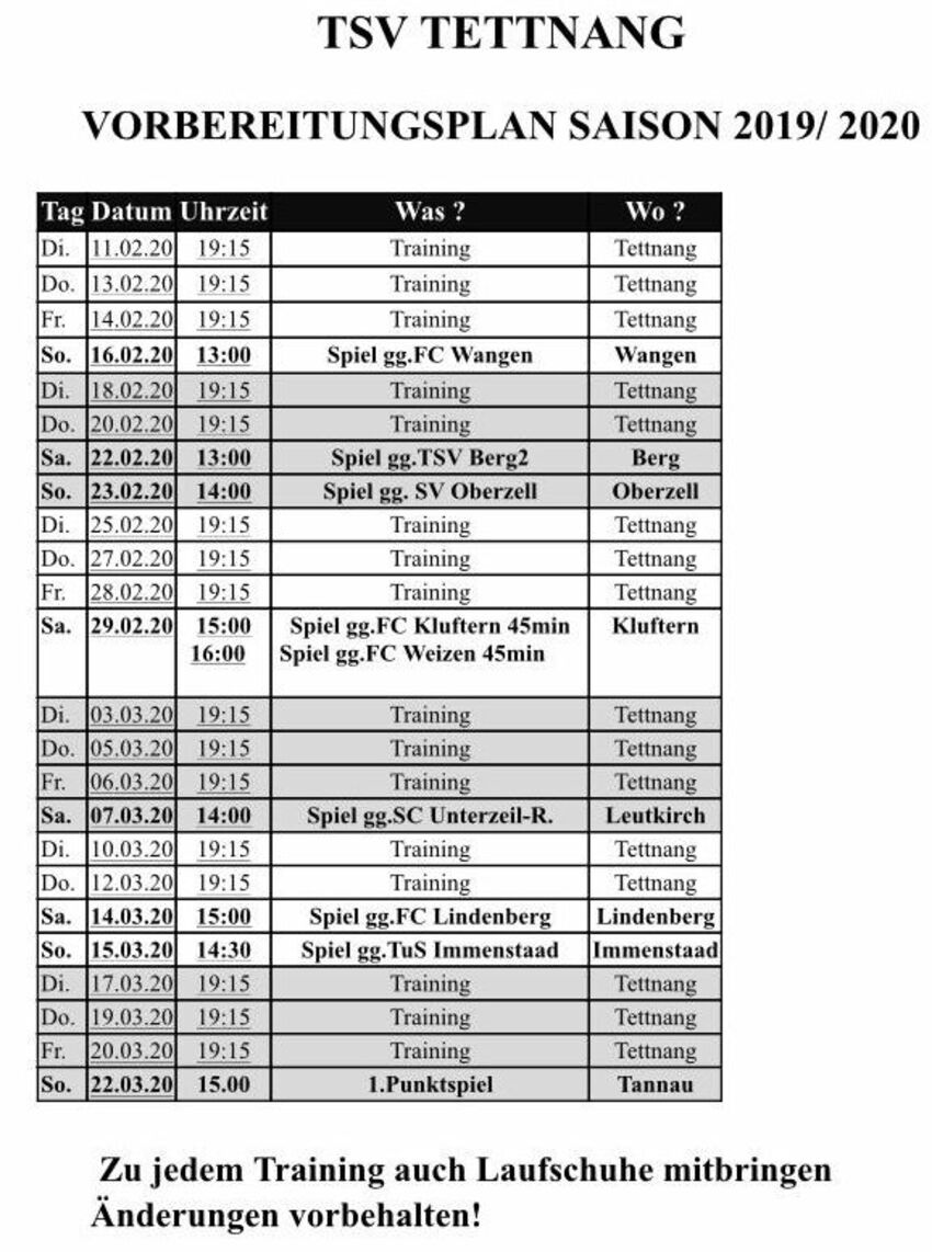 6 Wochen bleiben Zeit, um sich optimal auf das am 22.03.2020 stattfindende erste Rückrundenspiel gegen den SV Tannau vorzubereiten.