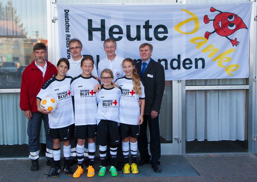 Der Blutspendedienst des Deutschen Roten Kreuzes und der Ortsverein Tettnang unterstützen den Mädchenfußball in Tettnang und haben den TSV bei der Anschaffung eines neuen Trikotsatzes unterstützt. Dies aber nicht ganz ohne Eigennutz, denn im Gegenzug tragen die D-Juniorinnen des TSV nun neben dem allseits bekannten roten Kreuz auf weißem Grund den Slogan „Spende Blut beim Roten Kreuz“ auf ihren schicken neuen Trikots.