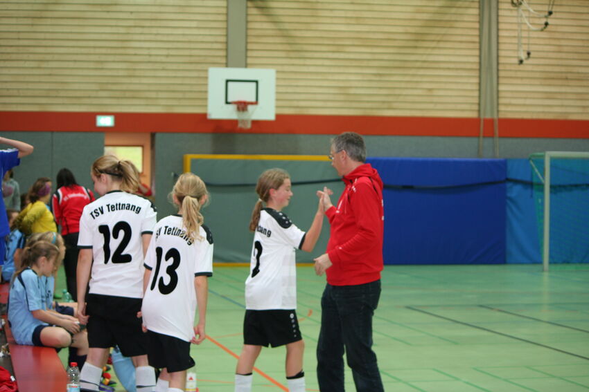 Die D1-Juniorinnen des TSV Tettnang qualifizierten sich beim Heimturnier in der Carl-Gührer-Halle am vergangenen Sonntag ohne Probleme für die nächste Runde der WfV-Hallenmeisterschaft. Nach einem klaren 3:0-Auftaktsieg gegen den SV Kressbronn hatten auch der SV Deuchelried II (4:0), der FC Lindenberg (4:1) und die Spvgg Lindau (6:0) keine Chance gegen die Tettnanger Mädels. Nur im letzten Spiel gegen den SV Maierhöfen-Grünenbach wurden die Mädchen zumindest zeitweise gefordert, gewannen aber letztlich sicher mit 2:0. Damit standen am Ende 6 Siege mit einem imposanten Torverhältnis von 19:1 zu Buche. Die Tore für den TSV erzielten Mareike Schmid (5), Sophie Hoffmann (3), Muriel Kroflin (6), Cathrin Geßler (3), Joy Stecher (2).