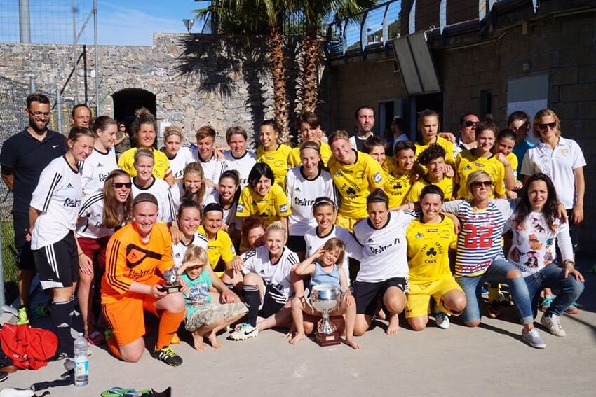 Internationales Turnier in Albenga (22.-25.05.2015) Voller Vorfreude und bestens gelaunt starteten wir um 5 Uhr morgens unsere Reise von Tettnang durch Deutschland, Österreich, Schweiz und Italien ins 600 km entfernte Albenga. Nach der 7-stündigen Fahrt ist die 25 köpfige Gruppe (Spielerinnen aus beiden Frauenmannschaften und einigen B-Mädels, Trainer Alex Haag & Familie und Trainer Peter Biberger) auf dem Campingplatz angekommen und die Bungalows wurden bezogen. Anschließend führte der Weg gleich an den nächsten Strand und es folgte das erste erfrischende Bad im Meer. Später gab es im Stadion nach einer kurzen Begrüßung dann endlich Abendessen. Trotz des anstrengenden Anreisetages stand um 22.30 Uhr das erste Spiel an. Gespielt wurde in einer 4er-Gruppe „Jeder gegen Jeden“ mit anschließenden Platzierungsspielen auf dem Großfeld (11 gegen 11) immer 2x30 min. Die Bedingungen waren „typisch italienisch“: Ball, Schiedsrichter, Temperaturen, Uhrzeit und auch der Platz waren gewöhnungsbedürftig. Das erste Spiel konnte aber trotz eines Rückstandes noch mit 2:1 gegen den Ausrichter Albenga Cisano gewonnen werden. Der Samstagmorgen begann mit einem gemütlichen Frühstück auf dem Campingplatz. Danach stand dann das Spiel gegen Musiello Saluzzo (Italien) an. Die Müdigkeit vom Vortag machte sich jetzt bemerkbar weshalb das Spiel mit 2:0 verloren ging. Nachmittags folgte ein Ausflug nach Alessio mit Spaziergang am Strand. Bei leichtem Nieselregel und dunkler Nacht (Anpfiff: 23:00 Uhr) folgte dann das letzte Gruppenspiel gegen Asm Arzo. Mit einer kämpferisch starken Leistung wurde das Spiel gegen die Mannschaft aus der Schweiz souverän mit 3:0 gewonnen. Somit stand man trotz einer Niederlage als Gruppenzweiter am nächsten Tag im Finale. Nach einer optimalen Spielvorbereitung mit viel Pasta und einem ausgiebigen Sonnenbad am Strand war es dann soweit: Anpfiff zum Finale bei absoluter Mittagshitze ☺ Auch dieses Mal waren die Italienerinnen leicht überlegen und so blieb nur der 2. Platz. Erfreulicherweise konnte sich Marina Müller den Preis für die beste Torspielerin sichern. Die restliche Zeit verging schnell und es gab noch viel Pizza und einen nächtlichen Ausflug an den Strand. Nach ereignisreichen und lustigen 4 Tagen machten sich alle gesund wieder auf den Heimweg.