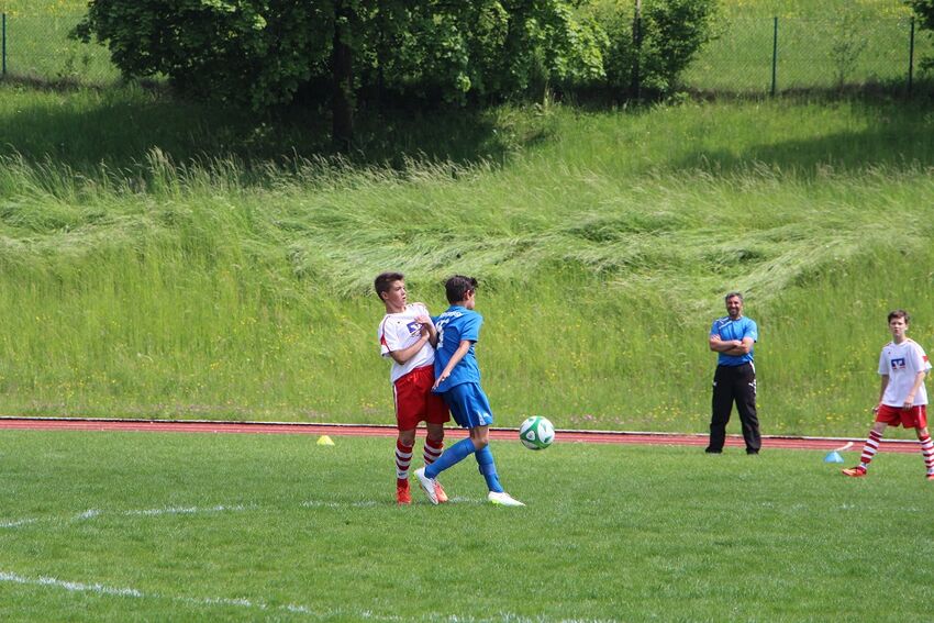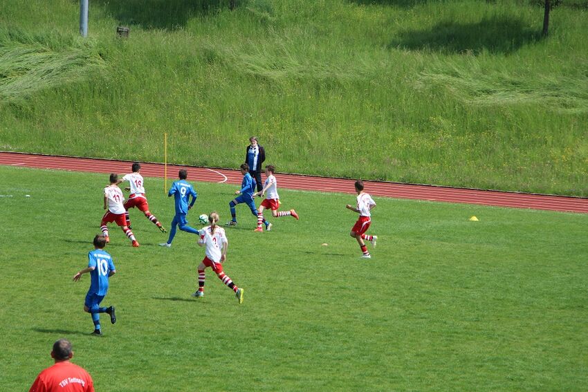 TSV Tettnang - VFB Friedrichshafen TSV Tettnang - VFB Friedrichshafen 1 : 1 ( 0 : 1 ) Von Beginn an entwickelte sich ein von der Taktik geprägtes Spiel. Tettnang spielte zum ersten mal in der Saison mit einem 4:3:1 , um somit kompakt in der Abwehr zu stehen und mit schnellem Spiel in die Spitze zum Erfolg zu kommen. Dass dies an diesem Tag goldrichtig war zeigte sich schon nach wenigen Minuten als wir zwei mal alleine vor dem Tor standen und schon früh in Führung hätte gehen müssen. Der VFB kontrollierte zwar dass Spiel ohne aber zu Torchanchen zu kommen. Dann ging allerdings der VFB mit 1 : 0 in Führung, ein Eckball konnte nur zur Mitte geklärt werden und dieser wurde mit einem unhaltbaren Schuss aus der zweiten Reihe abgeschlossen. Die Tettnanger Mannschaft spielte aber unbeeindruckt weiter und kam immer wieder zu gefährlichen Kontern, so auch Mitte der zweiten Halbzeit als wiederm ein Ball schnell in die Spitze gespielt wurde und Adrian Xhemaili den verdienten Ausgleich erzielte. Kurz vor Ende des Spiels hatte Nuri noch die Möglichkeit den Siegtreffer zu erzielen, er umspielte drei Gegenspieler aber sein Abschluss landete am Aussenpfosten. Nichts desto trotz war dieser Punktgewinn gegen den Tabellenführer nicht unverdient und die Tettnanger Mannschaft kann nun sehr entspannt den letzten 3 Punktspielen entgegensehen. Fazit Trainer: Ich bin begeistert wie sich die Kinder entwickelt haben und richtig stolz was Ihr geleistet habt.