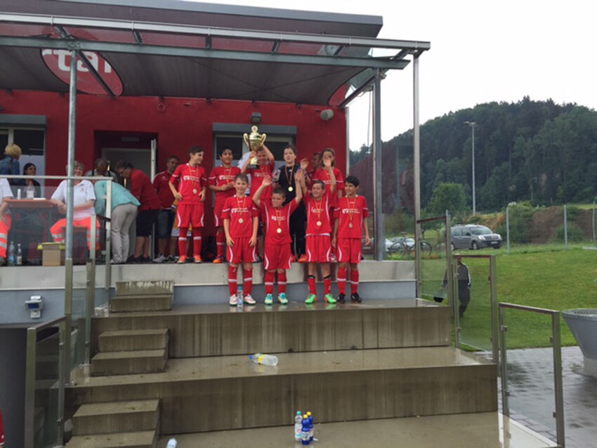 Die Tettnanger gewannen 4 ihrer Spiele und verloren gegen Salem 1, mit 1:2, qualifizierten sich aber für das Halbfinale. Dieses Halbfinale gegen Großschönach wurde klar mit 3:0 gewonnen. Im anderen Halbfinalspiel setzte sich Salem 1 gar mit 5:0 gegen Kluftern durch. So kam es zur Neuauflage im Endspiel Salem gegen Tettnang. Nach 5 Minuten gerieten die Tettnanger mit 1.0 in Rückstand bevor Dian Metushi 1 Minute vor dem Abpfiff mit einem tollen Schuss der Ausgleich gelang. Die Entscheidung viel durch Elferschießen. Nachdem alle 5 Salemer und Tettnanger Schützen verwandelt hatten, blieb es Enes Dogan, nach dem Fehlschuss der Salemer, vorbehalten, den TSV Tettnang zum Turniersieg zu schießen. Diese Aufgabe löste Enes Dogan gewohnt souverän, mit seinem zweiten verwandeltem Elfmeter. Der Jubel war danach grenzenlos zumal der Pokal alle Erwartungen (siehe Bild) übertraf. Flo Riess, Mergim Veliu (5), Dian Metushi (4), Timo Arnold (3), Enes Dogan (2) und Sven Arnold (1).