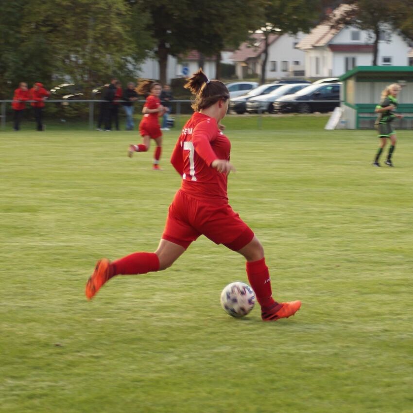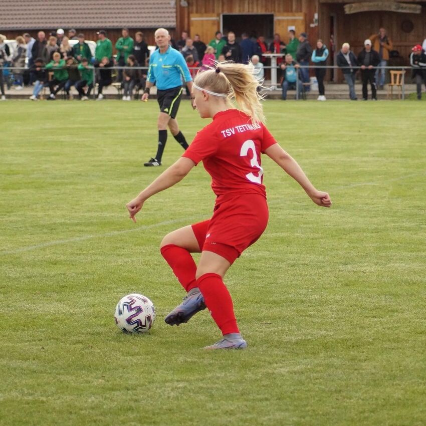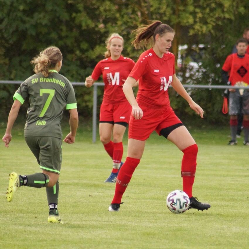 Wer vor dem Spiel einen Blick auf die Tabelle geworfen hatte, wusste dass die Rollen für dieses Spiel klar verteilt waren. Die Tettnangerinnen reisten als Tabellenzweiter zum noch sieglosen SV Granheim. Man startete sehr druckvoll nach vorne und konnte nach nur wenigen Minuten ein erstes Ausrufezeichen setzen, in dem ein Schuss an der Latte des Granheimer Tors landete. Von Anfang an bestimmten die Gäste das Spiel, mussten jedoch nach 12 Minuten einen Rückschlag hinnehmen. Im Aufbauspiel ging der Ball verloren und Granheim setzte zum Konter über die rechte Seite an und Lisa Pfänder musste am langen Pfosten nur noch einschieben. Das Tor zum Ausgleich fiel nur wenige Minuten nach dem Rückstand, indem Philina Loitz einen Ball aus dem Zentrum präzise auf Alica Reiner auf der rechten Seite spielte, diese denn Ball dann vors Tor brachte und Anja Stiefenhofer einnetzen konnte. Die Führung erzielte Chantal Ebinger mit einem direkt verwandelten Freistoß von der Sechzehner Linie. Anja Stiefenhofer konnte die Führung kurz darauf sogar ausbauen, indem Sie einen Rückpass von der Grundline Richtung Elfmeterpunkt ins lange Eck einschieben konnte. Fast mit dem Pausenpfiff erzielte Simone Birkle mit einem Weitschuss nach schöner Balleroberung und gezieltem Pass von Alina Weiss den 1:4 Halbzeitstand.