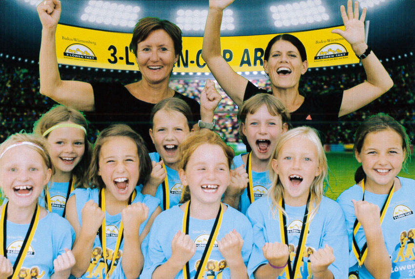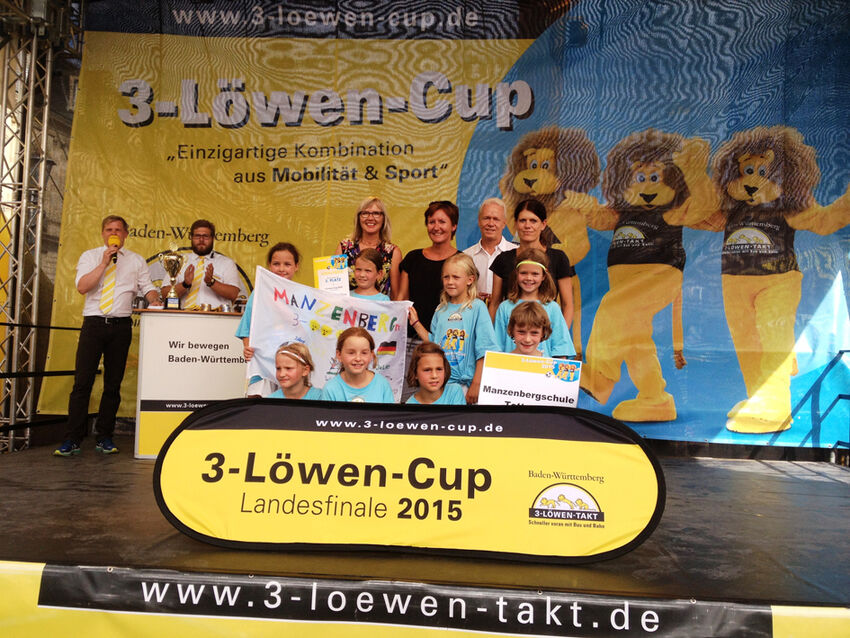 Nervosität machte sich bei allen schon bei der professionellen Mannschaftsvorstellung auf dem Schlossplatz breit, bevor dann um 10 Uhr das Turnier begann. In 4er Gruppen qualifizierten sich nur die besten beiden Mannschaften für das Viertelfinale. Im ersten Spiel traf die Grundschule Manzenberg auf die GS Gerabronn. Man merkte den Mädchen an, dass Sie noch nie vor einer solchen Kulisse gespielt haben. Früh mussten die Mädchen aus Tettnang einem Rückstand hinterherlaufen. Gegen körperlich überlegene Gegnerinnen, die Tettnanger waren mit Abstand das jüngste Team in diesem Landesfinale, befreiten sich die GS Manzenberg nur allmählich. Gedankenschnell schaltete Milena Weiss dann bei einem Freistoss, legte quer und Nele Haib erzielte mit einem tollen Schuss den erlösenden Ausgleichstreffer. Nun waren die Tettnanger besser im Spiel und wiederum Nele Haib erzielte dann sogar die 2:1 Führung und somit den Grundstein für den ersten Sieg im ersten Spiel.