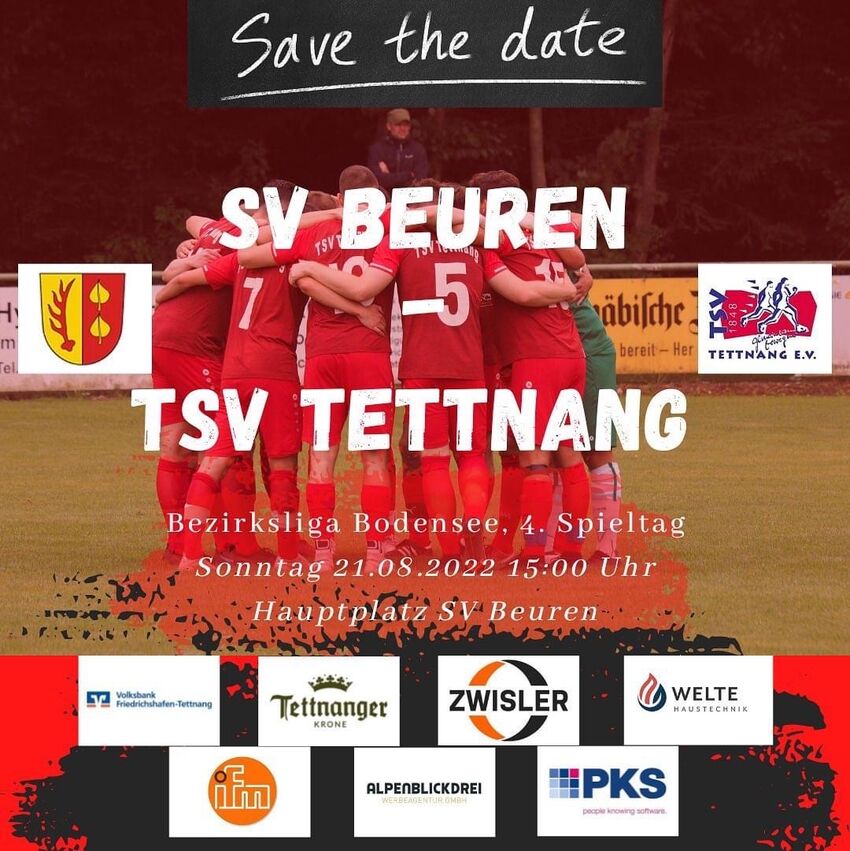 Unsere Herren sind mit 7 Punkten aus 3 Spielen ganz ordentlich in die Bezirksliga gestartet. Am kommenden Sonntag geht die Reise zum SV Beuren. Die Gastgeber haben bislang 3 Punkte aus 3 Spielen auf der Habenseite. Doch unterschätzen sollte man die Hausherren keineswegs. Bei beiden verlorenen Spielen kassierte man in der Schlussminute den Gegentreffer zur Niederlage. Wir sind gespannt auf das Spiel und freuen uns auf viele Tettnanger Anhänger.