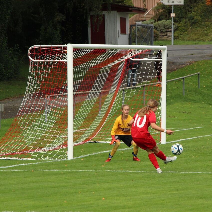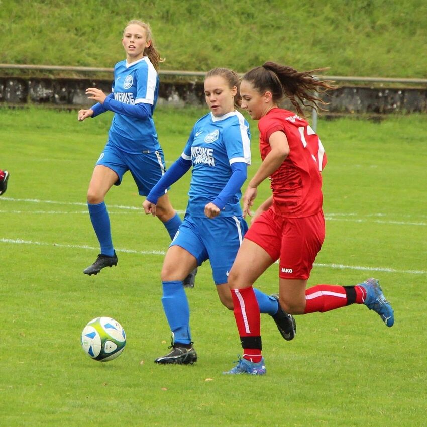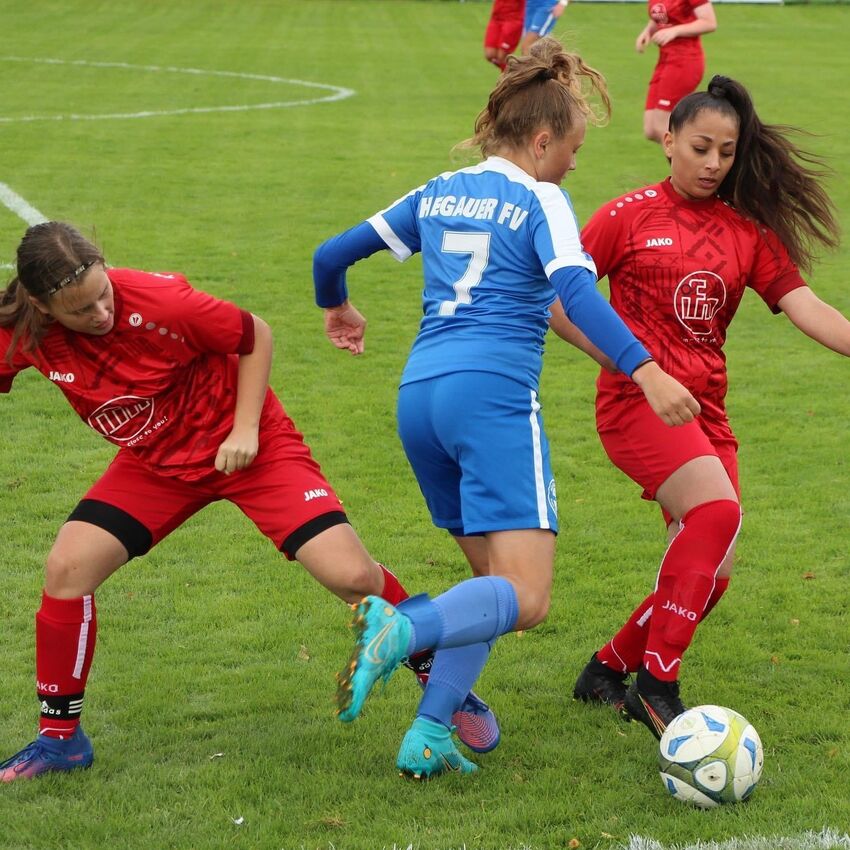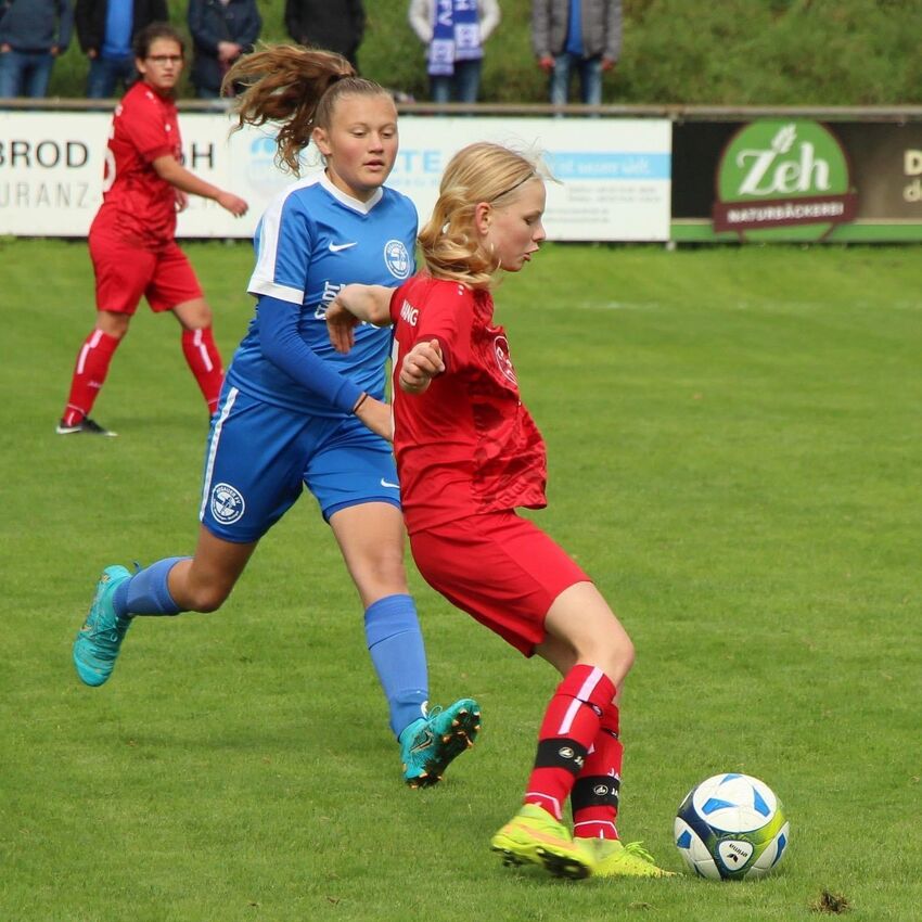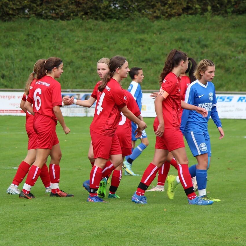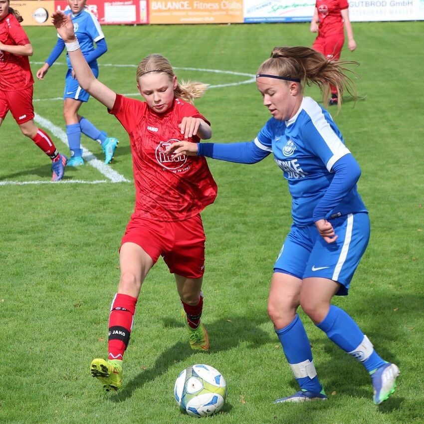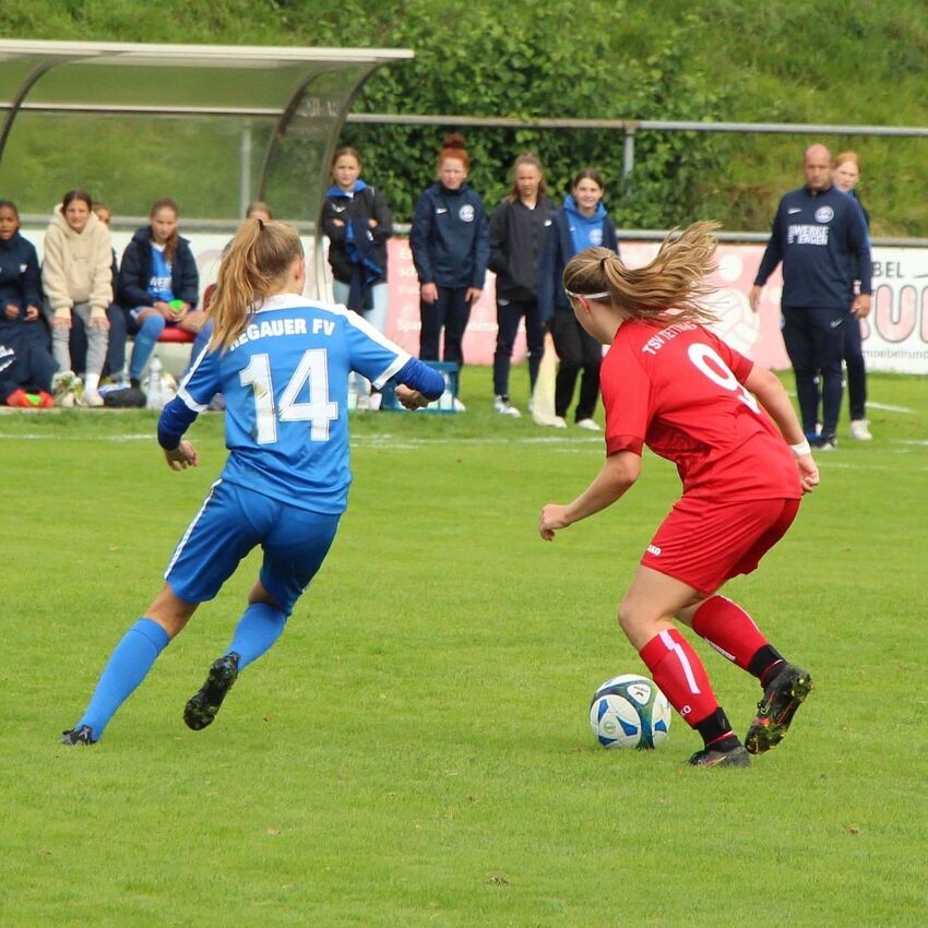 Ernüchternd endete die Heimspielpremiere der Nachwuchskickerinnen des TSV am vergangenen Samstag: Am Ende deutlich verlor man das Spiel gegen den Tabellenzweiten der vergangenen Saison aus Hegau mit 2:5. Dabei begann das Spiel aus Tettnanger Sicht planmäßig: Das hohe Pressing setzte die Gäste von Beginn an unter Druck und so dauerte es nicht lange, bis die ersten deutlichen Tormöglichkeiten herausgespielt wurden. Durch eine schöne Einzelleistung war es dann Jule Scheerer, die das 1:0 markieren konnte. Im Anschluss an die Führung verpassten es die Tettnangerinnen jedoch in der Folge, die vielen hochkarätigen Möglichkeiten zu nutzen und das Ergebnis schon frühzeitig deutlicher zu gestalten. Und so kam es, wie es kommen musste: Ein unnötiger Freistoß an der Strafraumgrenze und eine Unachtsamkeit im Deckungsverhalten nutzten die Gäste konsequent und glichen nach einer knappen halben Stunde aus. In der Folge entwickelte sich ein offenes Spiel mit Chancen auf beiden Seiten, jedoch ohne zählbare Torerfolge. Zur zweiten Halbzeit hatte man sich aus Tettnanger Sicht einiges vorgenommen und startete dementsprechend motiviert. Doch auch jetzt sollte sich eine Konstellation zeigen, die für das gesamte Spiel prägend war: Während man nach einem schnellen Angriff knapp am Gehäuse der Gäste scheiterte, waren diese im unmittelbar folgenden Gegenstoß konsequent und gingen mit 1:2 in Führung. Weitere 8 Minuten später war es dann eine Bogenlampe von der Außenlinie, die zum 1:3 führte und die Gäste endgültig auf die Siegerstraße brachte. Diese übernahmen nun das Kommando und diktierten das Spiel nach Belieben. Als logische Konsequenz der Hegauer Überlegenheit fiel nach einer Stunde das 1:4. Die taktischen Umstellungen aus Tettnanger Sicht führten danach zum 2:5, bevor Hegau eine Minute vor Spielende den 5. Treffer markierte. Alles in Allem ein gebrauchter Tag für die Gastgeberinnen, die sich viel mehr vorgenommen hatten.