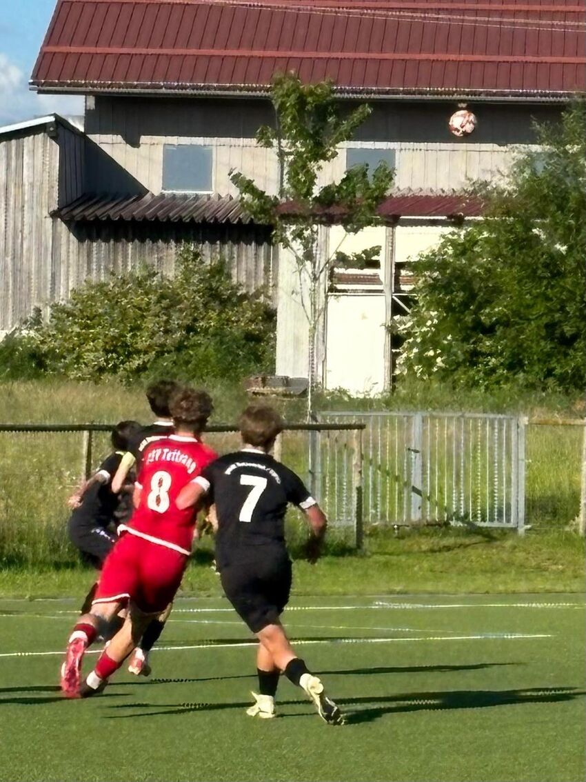 Nicht nur zu spät zum Treffpunkt - auch in einigen Aktionen waren die Spieler TSV zu Beginn des Spieles zu spät dran. Nach nur 14. Min. lagen die Tettnanger mit 2:0 gegen die einen Platz besser platzierten Gastgeber zurück. Die Weckrufe des Trainerteams schienen aber geholfen zu haben und in nur drei Minuten drehten Linus Wund, Marius Boos und Max Schulz das Spiel zu einer 3:2 Führung. Es blieb aber weiterhin vogelwild in beiden Defensiven und das muntere Toreschießen ging weiter. Auf das 3:3 von Bellamont in der 50. Min. erzielte Nick Diehnelt das 4:3. Wiederum nur kurze Zeit später egalisierte der Gastgeber die Führung und glich zum 4:4 aus. Ein Kopfball von Simon Schmid und ein Treffer von Alessio Vulpis brachten den TSV nun endgültig auf die Siegerstraße, dachten alle. Kurz vor Schluss dann doch noch der Anschlusstreffer der Gastgeber zum 5:6. Dabei blieb es aber auch. Mit diesem Sieg schoss sich der TSV auf Platz drei in der Tabelle und hat sogar noch die Chance auf die Vizemeisterschaft. Dazu brauchte es aber zwei Siege gegen den SV Kressbronn am Samstag 15.06. und eine Woche später am Freitagabendgegen die SGM SV Aichstetten. Dies wäre noch ein toller Abschluss für eine gute Saison.