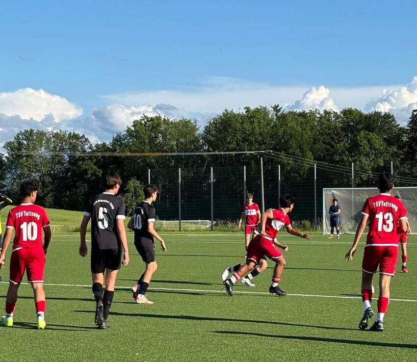 Nach Pfingsten ging es wieder los mit den Jugendspielen. Im Fokus war vor allem die B-Jugend in der Landesstaffel Süd bei Ihrem Kampf um den Klassenerhalt. Mit einem 2:1 Auswärtssieg kehrten die Mannen um Kapitän Julius Rauscher aus Pfaffenhofen zurück und erkämpften sich das nächste Endspiel am Sonntag zuhause gegen den FC Wangen. Nun geht es im Fernduell gegen den FV Biberach, der beim SV Weingarten Punkten muss. Beide Mannschaften haben sich 26 Punkte in bisher 23 Spielen erspielt, eigentlich ein Wahnsinn - in jeder anderen Landesstaffel hätten deutlich weniger Punkte zum Ligaverbleib gereicht. Nun aber steht fest, dass der TSV mit einem Sieg gegen den Tabellenfünften FC Wangen ein weiteres Jahr in der Landestaffel spielen wird. Bei jedem anderen Ergebnis benötigt es die Schützenhilfe vom SV Weingarten im Parallelspiel. Auch die anderen Teams kehrten erfolgreich von ihren Auswärtsspielen zurück. Die A-Jugend von Daniel Redl und Fabian Buchmaier erzielte mit dem 6:5 Sieg eher ein Handballergebnis und schielt mit einem Auge auf die Vizemeisterschaft. Die C1 musste sich den 5:1 Sieg teuer erkaufen, hier verletzte sich Lorenz Murray schwerer und musste mit dem Krankenwagen abtransportiert werden. Gute Besserung Lorenz. Sehr viel Freude macht gerade auch die C2 von Trainer Flo Heilig, die überraschend mit 4 Siegen aus 4 Spielen die Tabellenspitze in der Kreisstaffel anführt. Überhaupt setzten die zweier Teams vom TSV kleine Ausrufezeichen. Die B2 gewann 1:0 zuhause gegen den SV Schmalegg und feierte endlich nach zuletzt guten Leistungen den ersten Sieg. Auch die D2 gestaltet beim 4:2 Sieg ihr Heimspiel erfolgreich und schnuppert gleichmal am dritten Tabellenplatz.