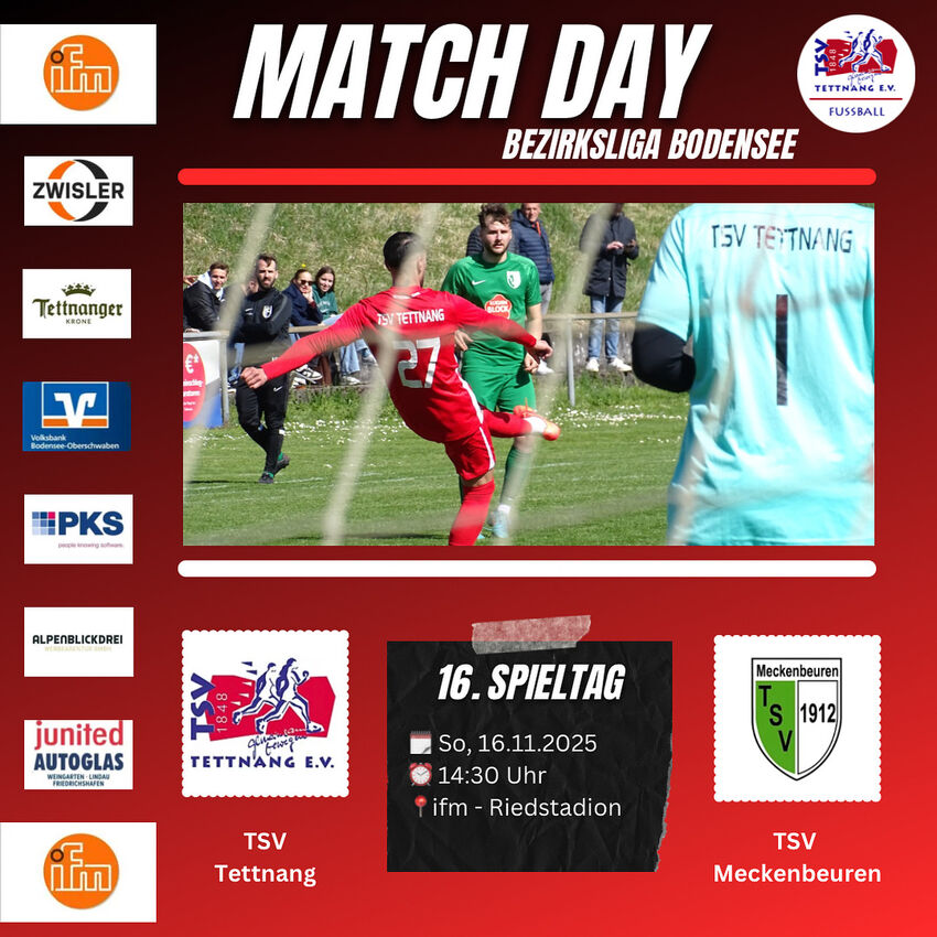 Am morgigen Sonntag steht für unseren TSV Tettnang ein extrem wichtiges Spiel in der Bezirksliga Bodensee an! Wir empfangen den TSV Meckenbeuren.