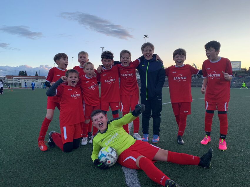 In der 31. Minute kam dann aber ein langer Ball unhaltbar aus der tiefstehenden Sonne auf unser Tor und es stand nur noch Zwei zu Eins für uns. Das Spiel wogte nun packend hin und her. Wir kamen zwar dann und wann zu entlastenden Angriffen. Die Hauptarbeit war nun aber defensiv dagegen zu halten. Die Fans des VfB hatten das eine oder andere Mal den Torschrei schon auf den Lippen. Aber unser Igor wuchs immer wieder über sich hinaus und hielt seinen Kasten sauber und uns im Rennen. Als der gute Schiedsrichter Tom Buchmüller nach packenden und an Spannung kaum zu überbietenden 50 Minuten und kurzer Nachspielzeit abpfiff konnte man den unbändigen Jubel unserer Jungs und der mitgereisten Eltern sicher bis nach Tettnang hören. Mit einer geschlossenen und unheimlich tollen Mannschaftsleistung bleiben die Jungs mit einem Unentschieden und sechs Siegen in dieser starken Gruppe ungeschlagen und belohnen sich mit der verdienten Herbstmeisterschaft. Es macht einfach Spaß zu sehen wie toll die Jungs zusammengewachsen sind und als Kollektiv auftreten. Voller Freude gehen wir nun in die Hallenrunde und stellen uns den kommenden Aufgaben wieder hochmotiviert.