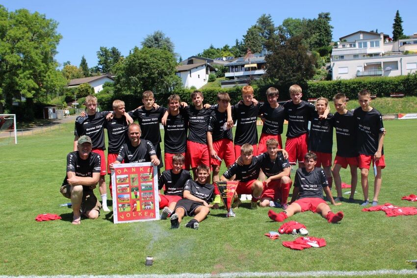 Am 14. Spieltag fuhr man mit viel Respekt zur Wiedererstarkten TSG Ailingen, die eine Woche zuvor den Tabellenzweiten Oberzell mit 4:1 besiegten. In wohl einem der besten Saisonspiele gewann der TSV mit 10:0 Toren in Ailingen und ab da war klar, dass sich der TSV die Meisterschaft wohl nicht mehr nehmen ließ. Und so war es auch. Ungeschlagen mit nur 9 Gegentore stand die Mannschaft von Volker Boos und Berthold Mollnau bereits drei Spieltage vor Schluss als Meister fest. Von Staffelleiter Willi Schaible nahm Kapitän Julius Rauscher am vorletzten Spieltag den Meisterwimpel entgegen und am letzten Spieltag feierte dann die Mannschaft gebührend mit den neuen Meistertrikots einen herausragenden Erfolg. Vielen Dank an die Spieler, die Eltern und die tollen Helfer im Hintergrund (Ralf, Dagmar, Yvonne, Ela, Rene) ohne die so ein Erfolg nicht möglich wäre.