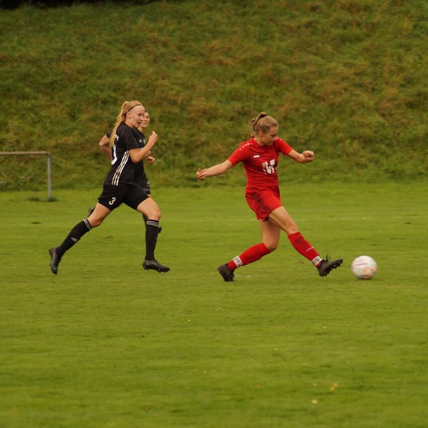 Die Gastgeberinnen starteten wie gewohnt mit gutem Kombinationsfussball und druckvollem Spiel nach vorne, was sich auch direkt in der elften Spielminute mit einem Tor durch Simone Birkle auszahlte. Einen langen Ball von Alicia Serafini über die Bellenberger Abwehrreihe verarbeitet Birkle sauber und schob zur frühen Führung ein. Nur wenige Minuten später war es Ihre Sturmpartnerin Anja Stiefenhofer, die mit Ihrem bereits zehnten Saisontreffer die Führung ausbauen konnte. Knapp eine halbe Stunde war gespielt ehe der Ball erneut im Tor der Gäste zappelte. Alica Reiner zog außerhalb des Strafraums einfach mal ab und brachte den Ball exakt im Winkel unter. Bellenberg kam lediglich zu einer nennenswerten Torchance, in dem ein Freistoß aus 20m gerade noch von der Tettnanger Torfrau über die Latte gelenkt werden konnte. Fast mit dem Pausenpfiff erzielte Simone Birkle nach schönen Pass von Emilia Heilig in die Schnittstelle ihren zweiten Treffer im Spiel und machte den Halbzeitstand somit perfekt.