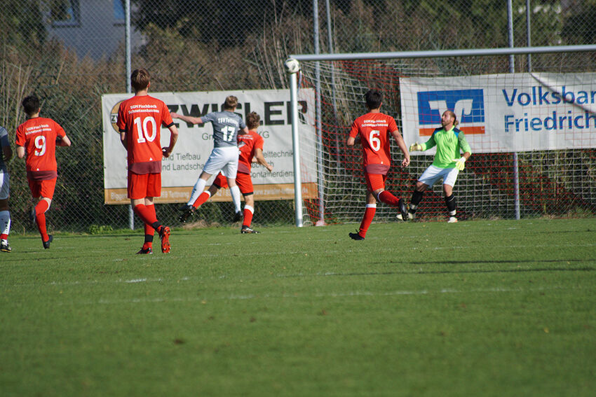 So konnte Kai Zoyke in der 37. Spielminute vom Gästetorhüter nur noch per Foul gestoppt werden. Dieser machte seinen Fehler jedoch wieder gut und hielt den anschließend schwach geschossenen Elfmeter. Nun versuchte die SGM Fischbach/Schnetzenhausen noch vor dem Halbzeitpfiff auf den Ausgleich zu drängen. Jedoch statt dem Ausgleich für die Spielgemeinschaft kam es nach einem schön herausgespielten Angriff zum 2:0 durch einen Kopfballtreffer von Tim Letsche. Nur wenige Minuten später erhöhte Kai Zoyke zum 3:0.