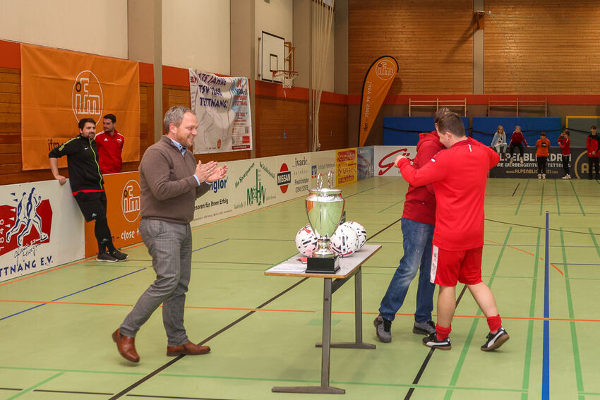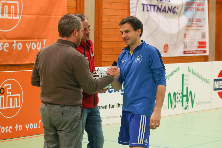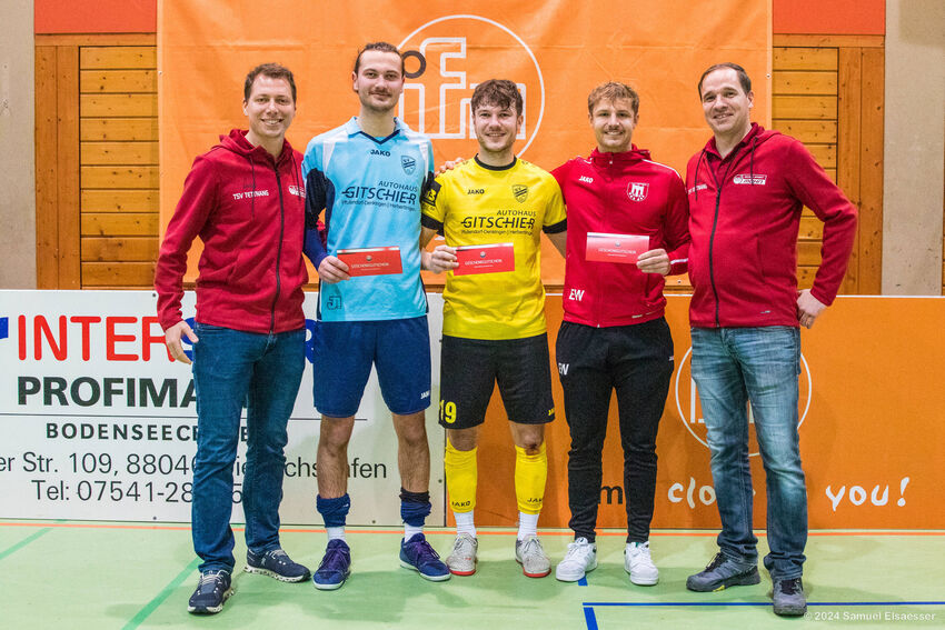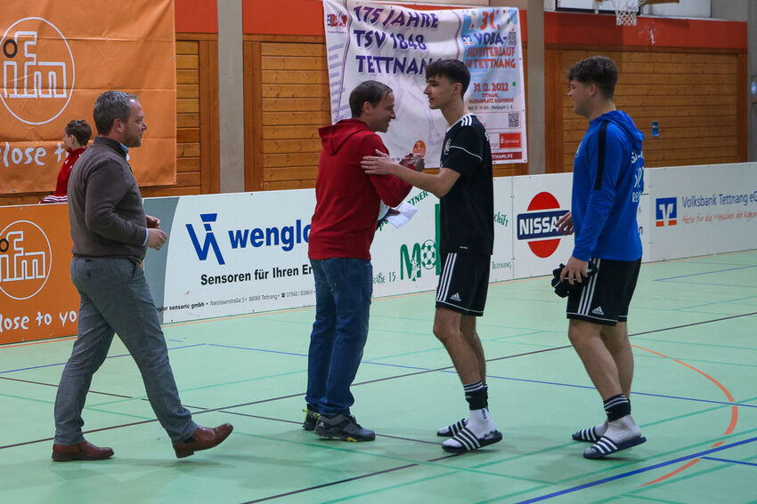Einen sehr guten Zuspruch verzeichnete der Veranstalter bei den Jugendturnieren. „Im Großen und Ganzen können wir ein positives Fazit ziehen. In allen ausgeschriebenen Jugendbereichen waren die Turniere schnell ausgebucht“, bilanzierte Andreas Müller, Jugendleiter des TSV Tettnang. Aus sportlicher Sicht stach das B-Juniorenturnier heraus. Mit dem FC Wangen, FV Ravensburg, VfB Friedrichshafen nahmen die größten Vereine aus der Region teil. Zudem schickte auch der ehemalige Regionalligist SC Pfullendorf seine U16-Mannschaft vorbei - Tettnangs B-Jugendtrainer Volker Boos hatte da ein starkes Feld zusammengestellt. Das sorgte für hohe Erwartungen, denen die Nachwuchstalente gerecht wurden. „Es gab sehr schönen Hallenfußball zu sehen. Sie haben gezeigt, dass sie Fußball spielen können“, so Müller. Den Turniersieg sicherte sich der FC Wangen. Im Finale bezwangen die Allgäuer den VfB Friedrichshafen mit 2:0. „Wangen war über das gesamte Turnier die beste Mannschaft“, sah der 49-jährige TSV-Jugendleiter einen verdienten Sieger. Grundsätzlich legte Tettnang Wert darauf, viele Teams aus der Umgebung einzuladen, um dem Publikum viele Spiele mit Derbycharakter zu bieten. Ein Konzept, das aufging. Die Halle war gut besucht, vor allem auch das Männerturnier am Dreikönigstag lockte viele Zuschauer an. Hier stand bei Tettnang erstmals der neue Trainer Tobias Kaiser an der Bande. Er wurde vom A-Ligisten SV Ettenkirch als Nachfolger von Michael Steinmaßl geholt und nutzte den ifm-Cup zum Kennenlernen. Seine Erkenntnis: „Die Mannschaft hält zusammen, da ist kein Stinkstiefel dabei“, meinte Kaiser. Besser war Ligakonkurrent SV Kressbronn, der den Gastgeber im Halbfinale mit 4:2 bezwang und den Titelverteidiger VfB Friedrichshafen (Vierter im Jahr 2023) ablöste. „Sie haben mir übers ganze Turnier am besten gefallen und sehr gut verteidigt“, sagte Kaiser.